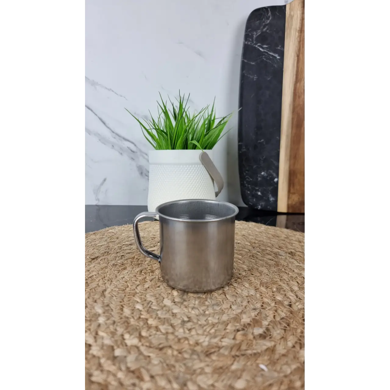 Благодаря лёгкому весу и компактным размерам кружку удобно брать с собой. Гладкая поверхность легко моется и долго сохраняет аккуратный внешний вид. Стальной цвет и лаконичный дизайн гармонично сочетаются с любой кухонной посудой.