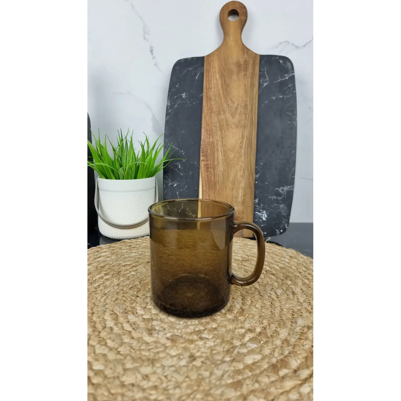 Дымчатое стекло создаёт стильный визуальный эффект, демонстрируя цвет напитка, а толстые стенки обеспечивают теплоизоляцию, сохраняя напиток горячим дольше. Эргономичная форма и удобная ручка делают использование чашки комфортным.