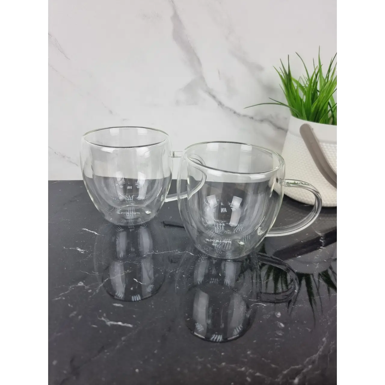 Набор чашек с двойным дном – это не только стильная, но и практичная посуда для дома и кафе. Благодаря особой конструкции из боросиликатного стекла напитки долго сохраняют свою температуру, при этом внешняя поверхность кружки остается комфортной на ощупь. Вы сможете без опаски держать чашку с горячим кофе, чаем или какао.