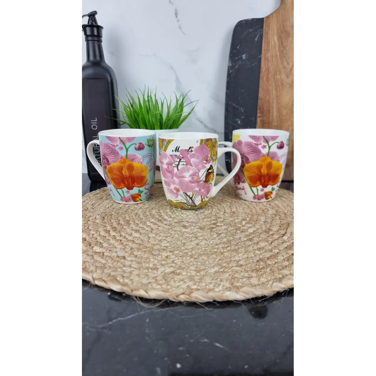 A35D-350 Чашка фарфоровая 350мл Орхидея MIX коническая (по 8шт в уп)