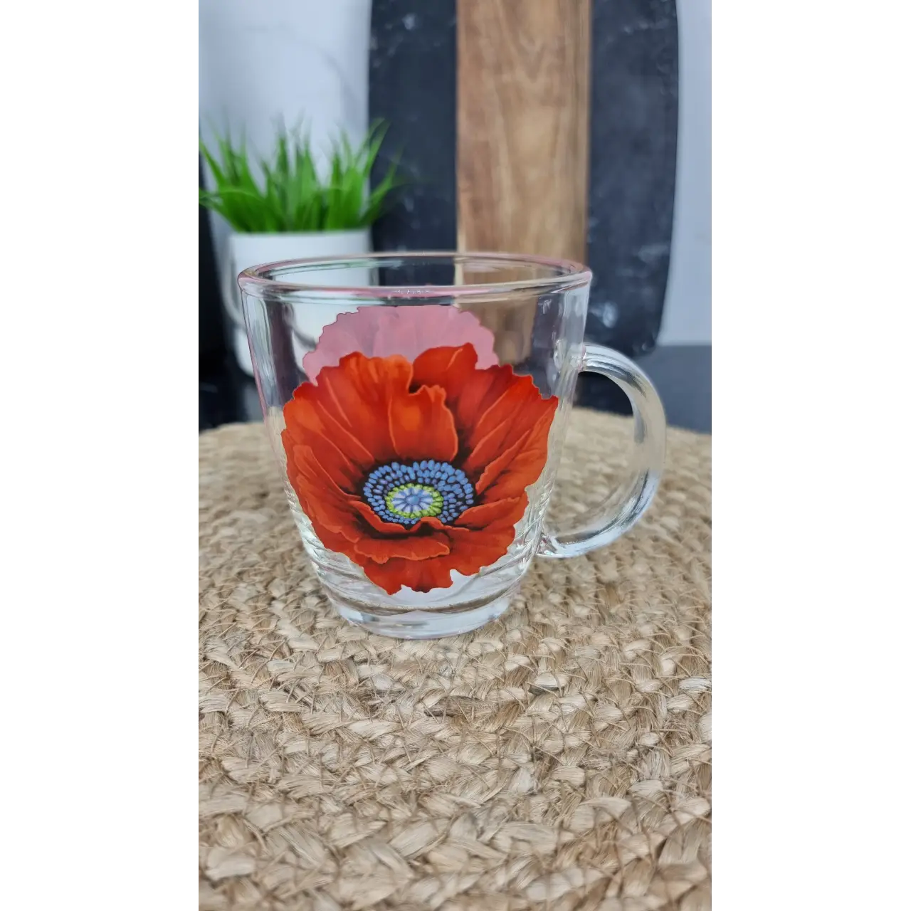 Стеклянная чашка «Мак» объемом 340 мл — практичная и стильная посуда для повседневного использования. Изготовлена из прочного прозрачного стекла и украшена ярким цветочным рисунком с красными маками, который придает чашке выразительный и привлекательный внешний вид. Удобная ручка обеспечивает комфорт при использовании, а оптимальный объем отлично подходит для чая, кофе, какао и других горячих или холодных напитков.