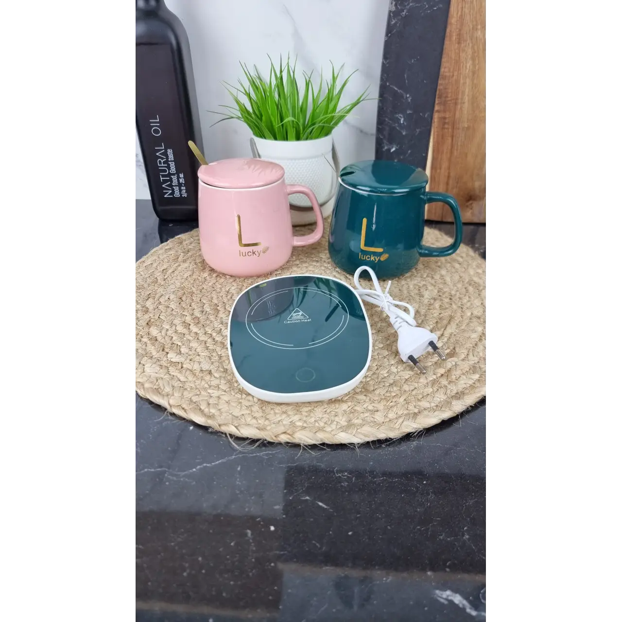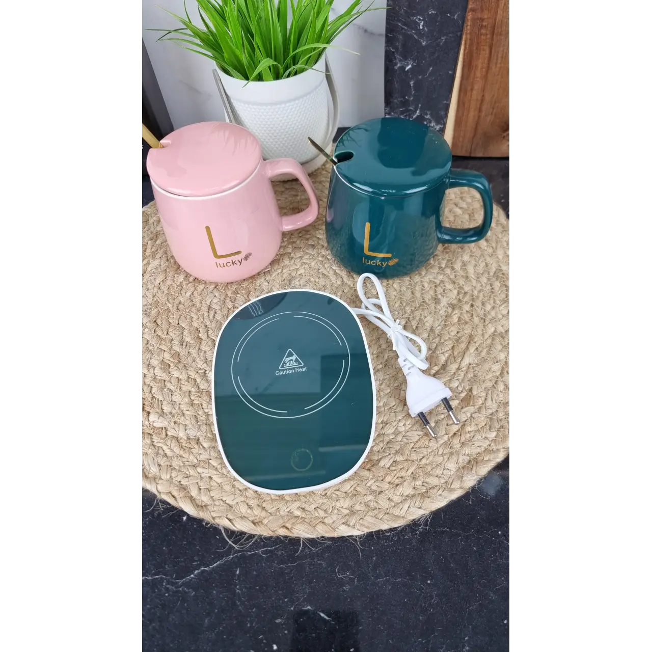 50693 Набор фарфоровых чашек 2-пр. 420 мл с крышкой и подогревательной подставкой (подарочная упаковка)