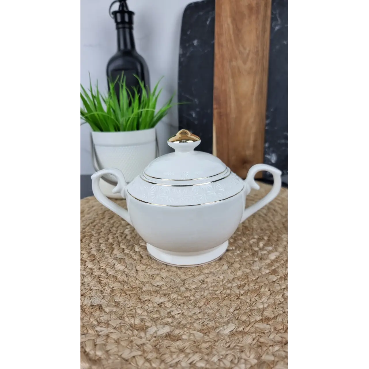 Эта стильная сахарница с ручкой идеально подойдет для удобного хранения сахара или других сыпучих продуктов на вашем столе. Изготовленная из высококачественного фарфора, она имеет элегантную круглую форму и удобную ручку для легкости использования. Белый цвет придает ей утонченность, а простой и стильный дизайн позволяет сочетать ее с любым посудом и интерьером кухни.