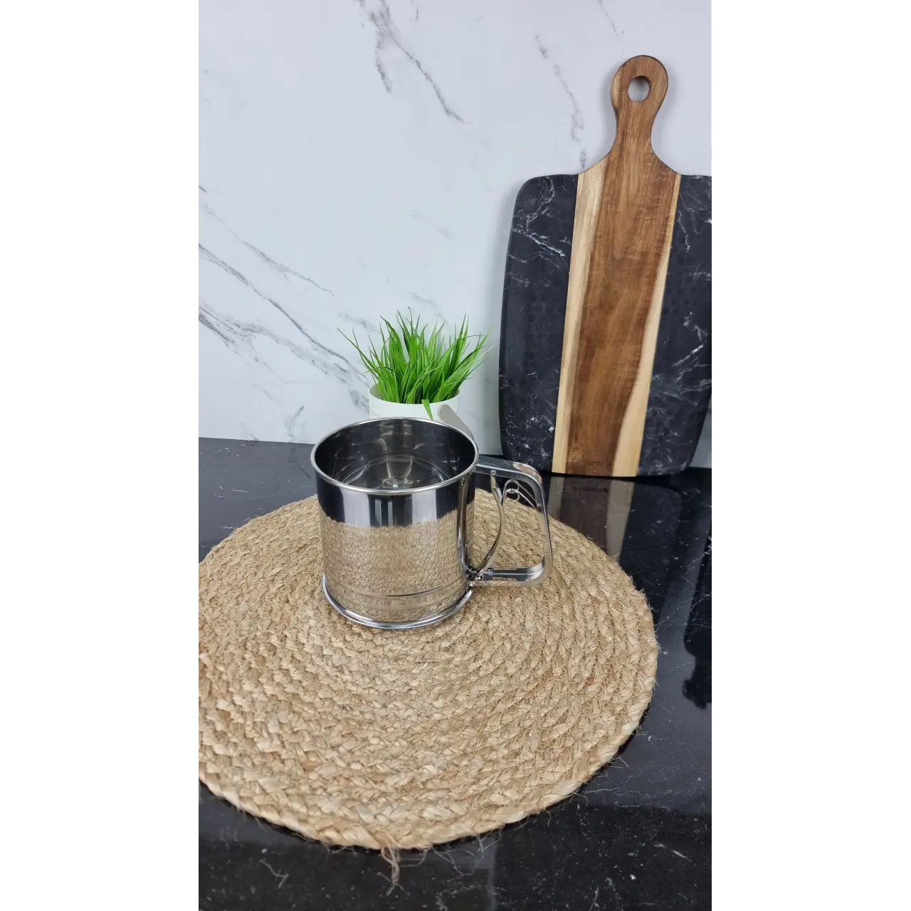 Кружка-сито — практичный кухонный аксессуар для заваривания чая или других напитков. Изготовлена из качественной нержавеющей стали, отличается прочностью, устойчивостью к коррозии и длительным сроком службы. Благодаря удобной конструкции и сетчатому дну кружка обеспечивает эффективное отделение заварки от жидкости.