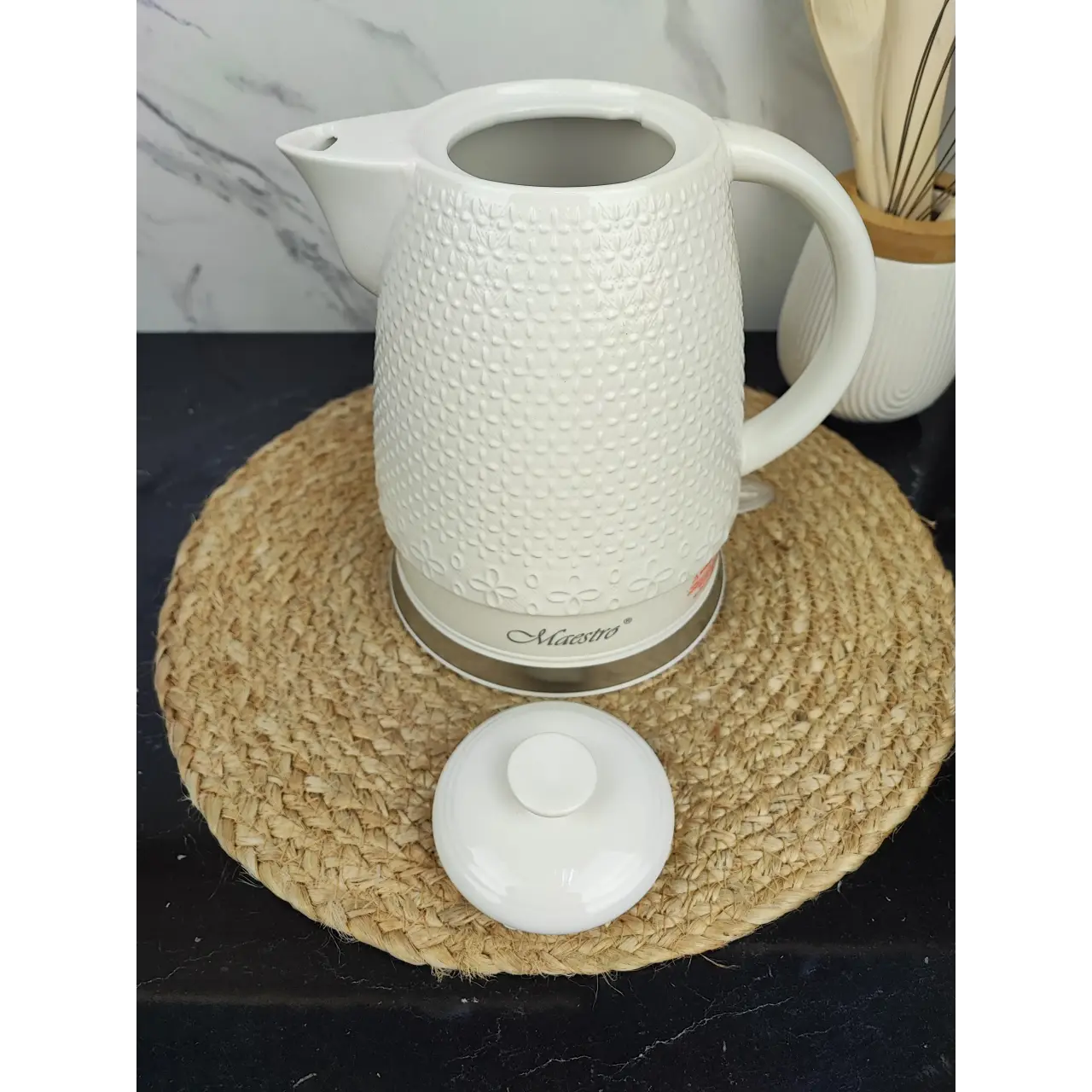 Электрочайник Maestro MR 073 объемом 1,5 л, мощностью 1200 Вт. Электрический чайник предназначен для нагрева воды до кипения, оснащен функцией автоматического отключения и защитой от перегрева. Модель имеет привлекательный современный дизайн, отличается простотой в работе и уходе. Скрытый (дисковый) нагревательный элемент уменьшает образование накипи и способствует длительному сроку службы.