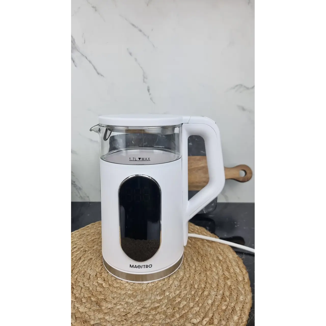 Корпус изготовлен из высококачественного боросиликатного стекла, безопасного для здоровья и легко моющегося. Внешняя поверхность из полипропилена (PP) делает чайник безопасным на ощупь и удобным в использовании. Эргономичная ручка и удобный носик обеспечивают комфортное наливание воды без разбрызгивания. Сдержанный белый цвет (White) гармонично вписывается в любой интерьер кухни.