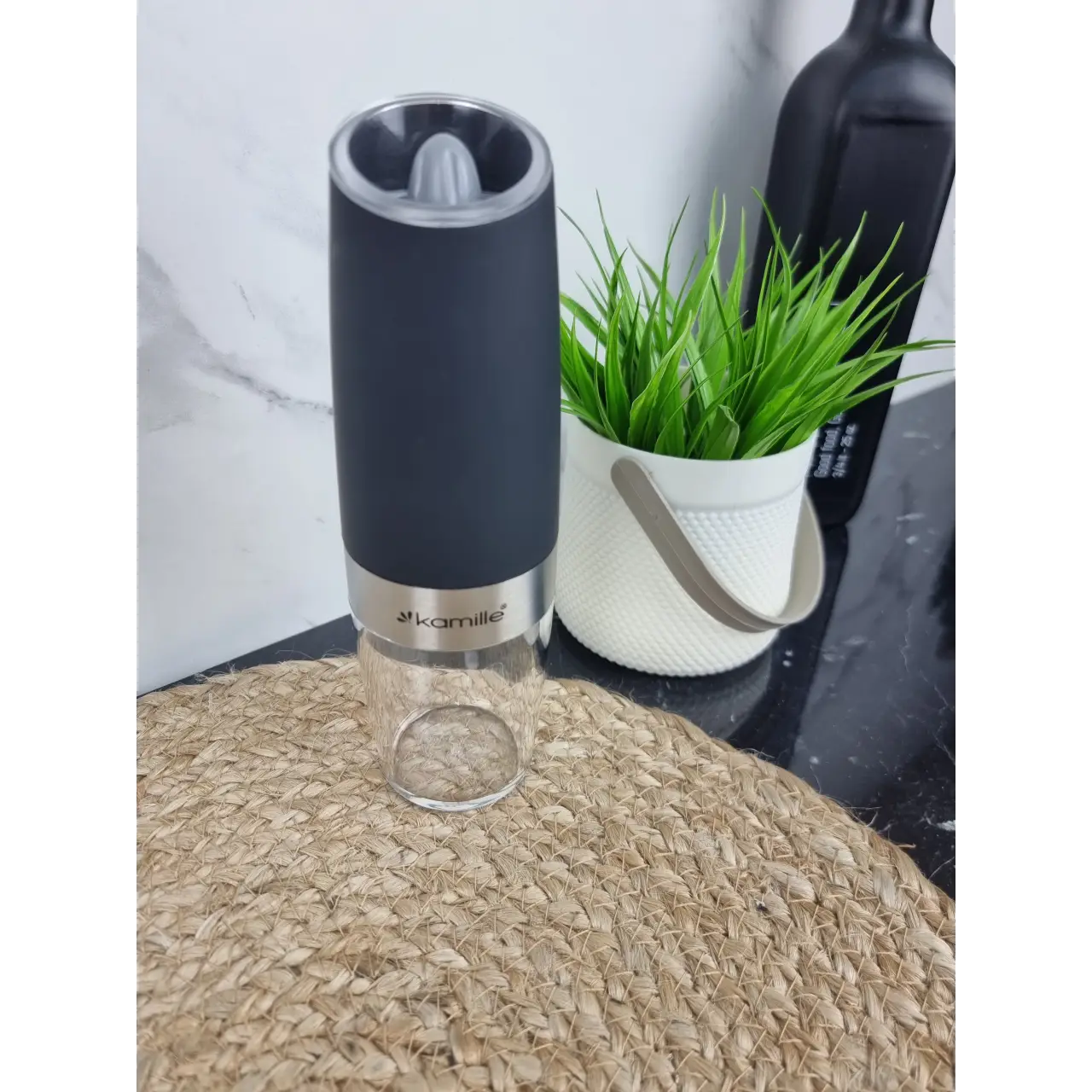 Электрическая мельница для специй Kamille KM-7055 на батарейках — это удобный и стильный кухонный аксессуар, который поможет легко завершить любое блюдо, придав ему насыщенный вкус и индивидуальный характер. Мельница без труда измельчает соль, перец и различные специи, сохраняя их натуральный аромат.