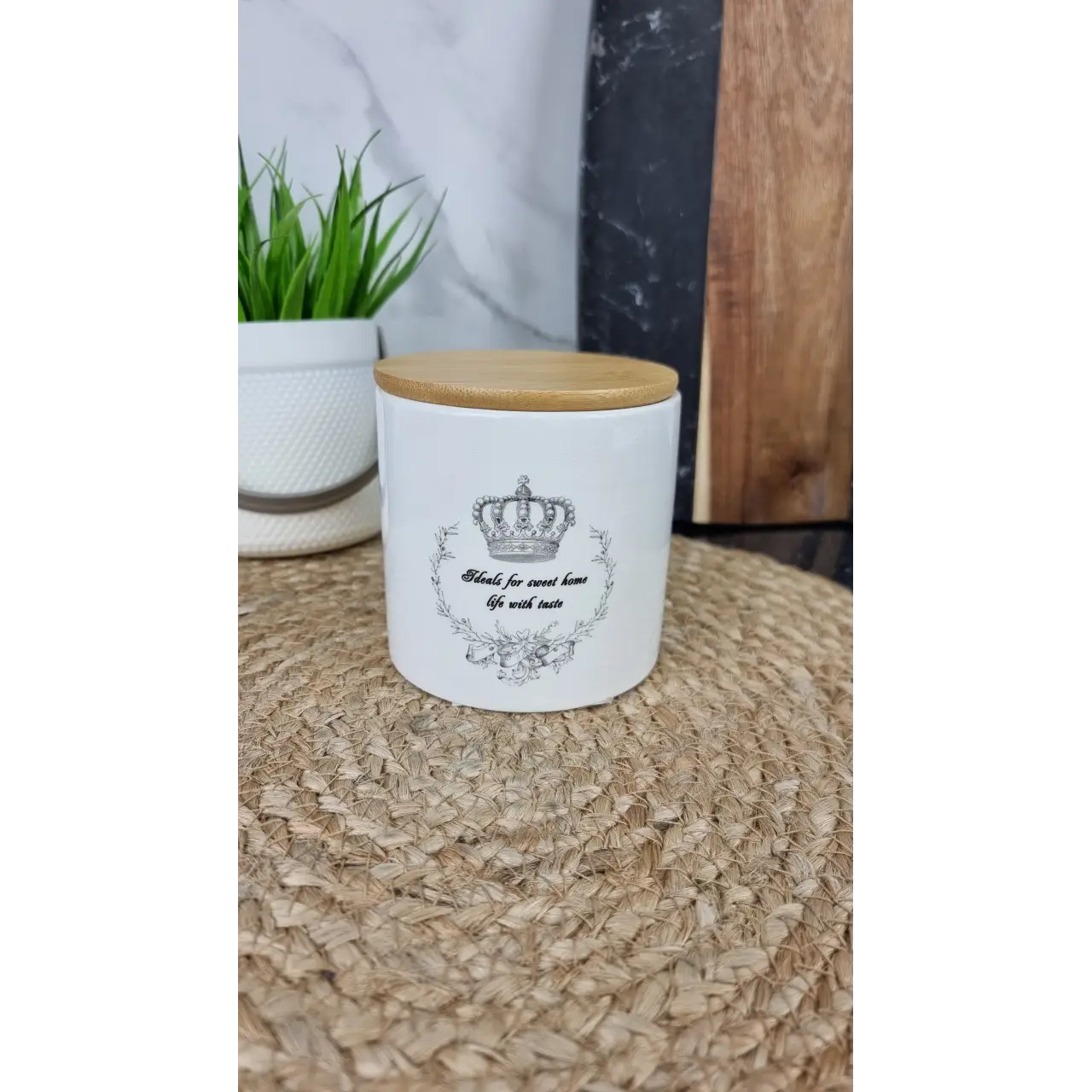 Эта элегантная керамическая банка с деревянной крышкой "Корона" станет стильным дополнением вашей кухни или интерьера. Её утончённый дизайн и высокое качество материалов позволяют не только хранить продукты, но и придают роскошный вид любому помещению. Идеальна для хранения кофе, чая, специй или сахара, она также станет отличным подарком для любителей классики и королевского стиля.