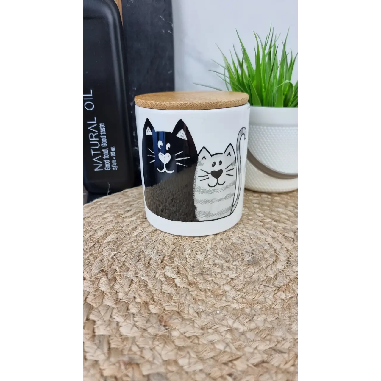 Емкость для сыпучих "Мурчики" (685 мл) с бамбуковой крышкой