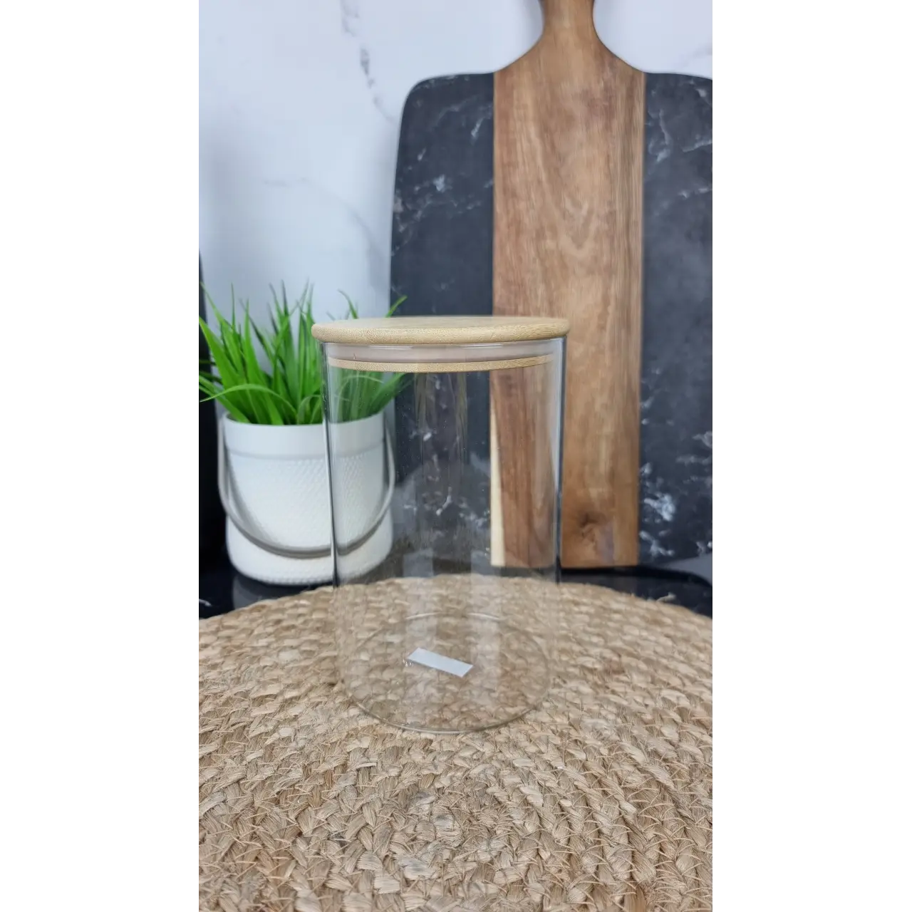 TS2305C Емкость для сыпучих стеклянная 10*15см круглая бамбук крышка