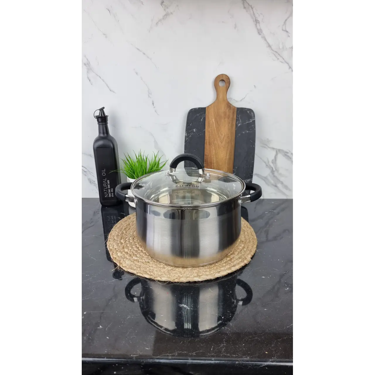ZB-6 B Кастрюля сферическая 6,0л нерж.сталь стекл.крышка BLACK