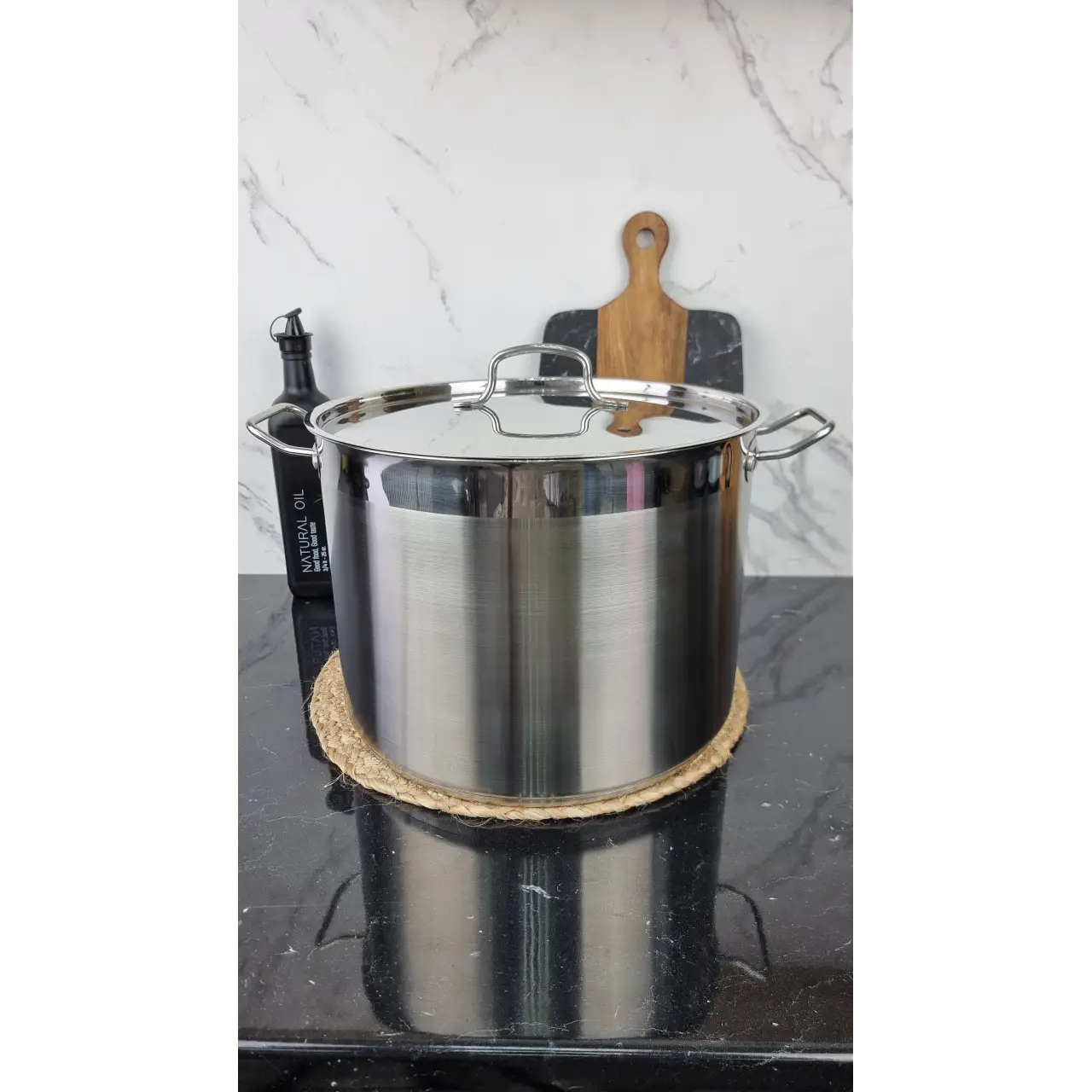 Кастрюля из нержавеющей стали объёмом 22 литра — практичная и универсальная посуда, подходящая для использования на всех типах плит. Модель отличается полированной стальной поверхностью, которая не только придаёт изделию эстетичный внешний вид, но и облегчает уход за ним.