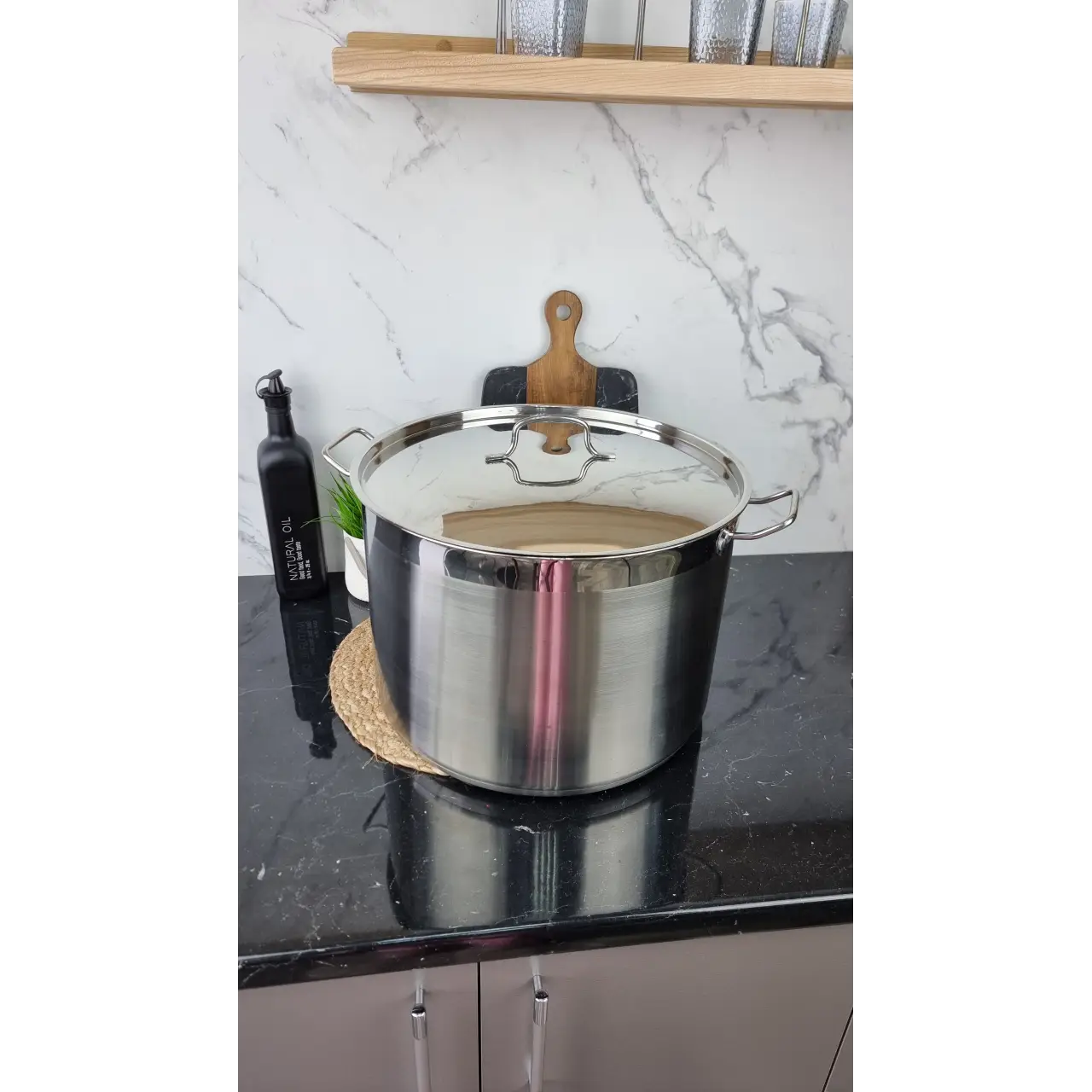 Кастрюля из нержавеющей стали объёмом 30 литров — прочная, вместительная и долговечная посуда, рассчитанная на интенсивное использование. Материал устойчив к коррозии, температурным перепадам и механическим воздействиям, благодаря чему изделие сохраняет отличные эксплуатационные свойства на протяжении многих лет.