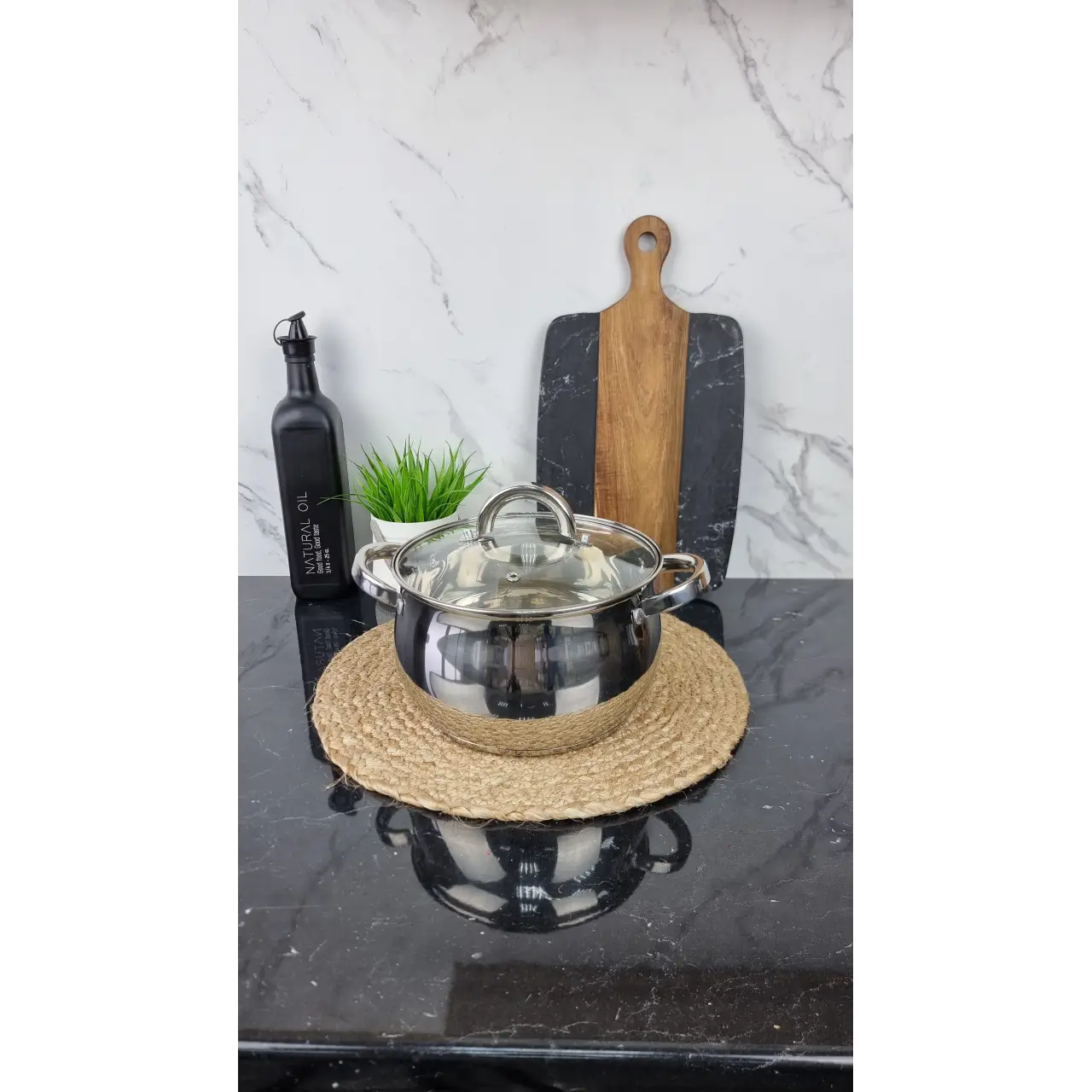 Сферическое дно способствует равномерному распределению тепла, что обеспечивает качественное приготовление и экономию энергии. Удобная стеклянная крышка позволяет контролировать процесс готовки, оснащена пароотводом и отверстиями для слива жидкости, поэтому можно сцеживать воду без дополнительного ситечка.