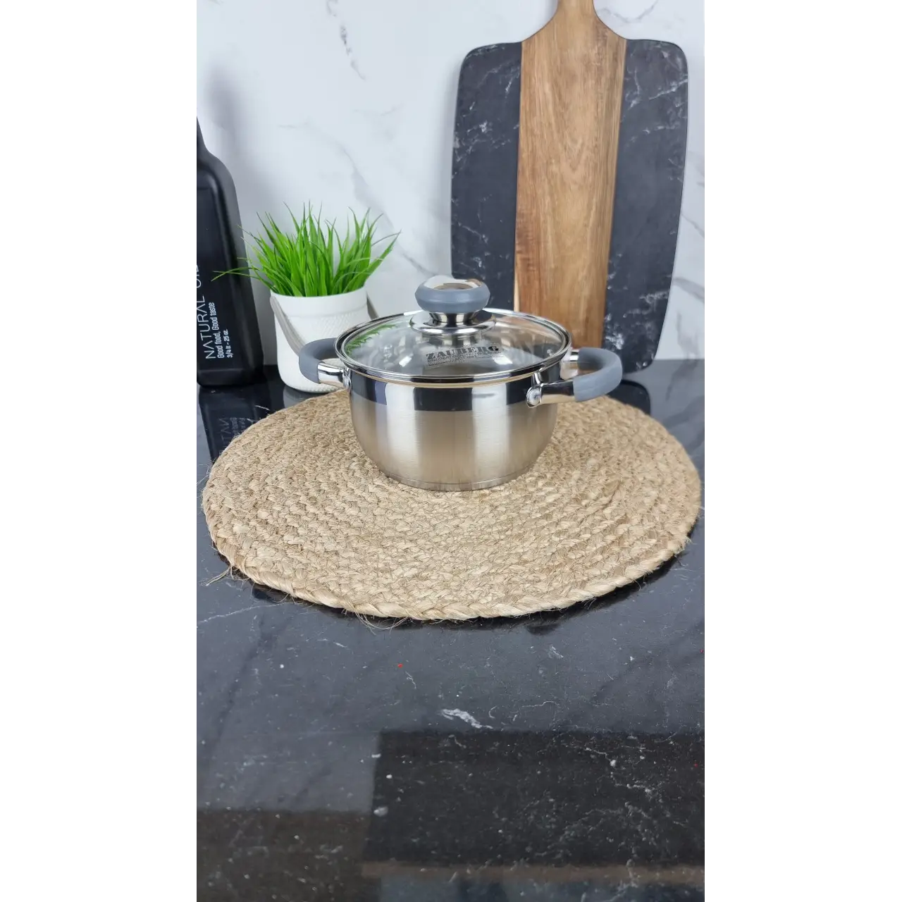 В комплект входит крышка из жаропрочного стекла с пароотводом, позволяющая наблюдать за процессом приготовления без снятия крышки. Компактные размеры делают кастрюлю универсальным вариантом для любой кухни.
