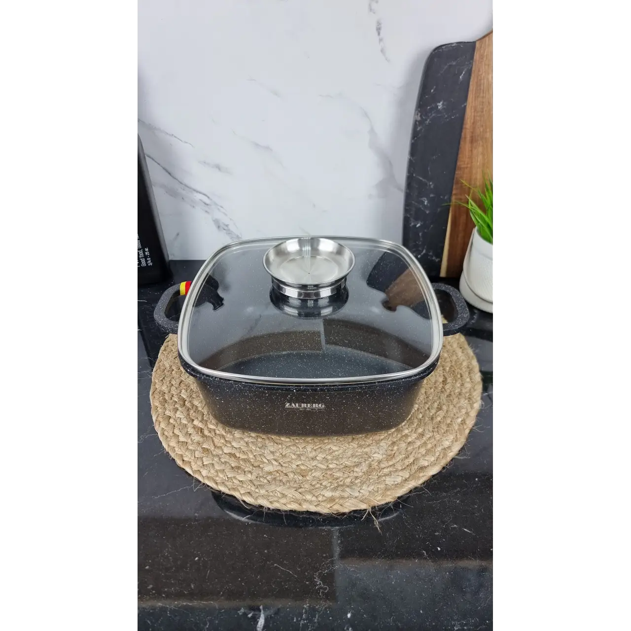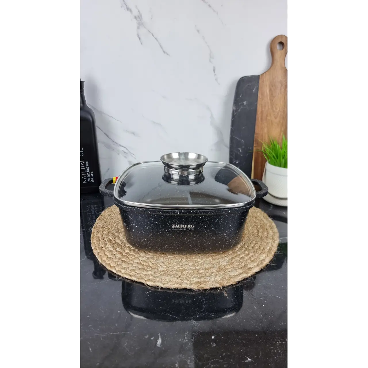 1224-BL Кастрюля квадратная 4,4л антипр.покрытие стек.крышка индукция Мрамор