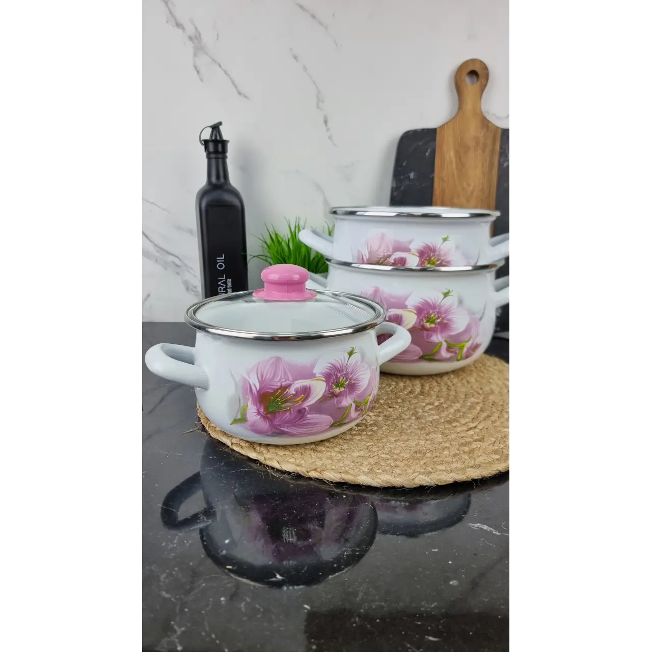 Материал кастрюль: углеродистая сталь с двухслойным эмалированным покрытием
