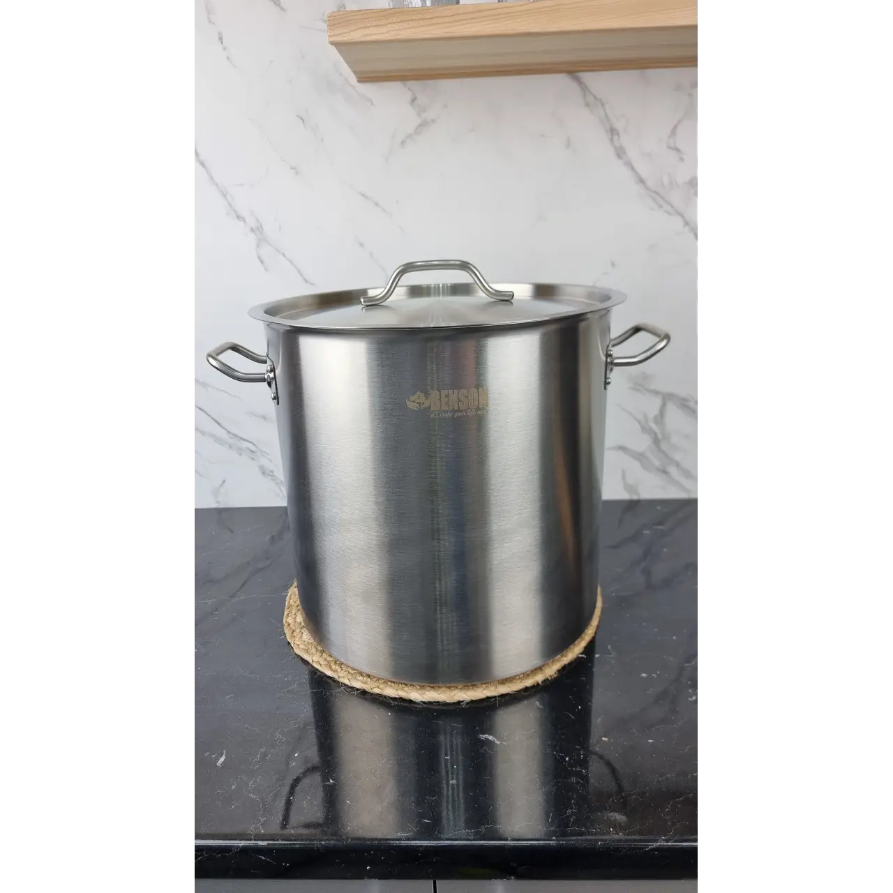 Кастрюля BN-605 объёмом 34 л, размером 35×35 см – большая и вместительная посуда из нержавеющей стали, идеально подходящая для приготовления больших объёмов пищи. Подходит для использования на профессиональной кухне, в ресторанах, кафе, а также для домашних заготовок.