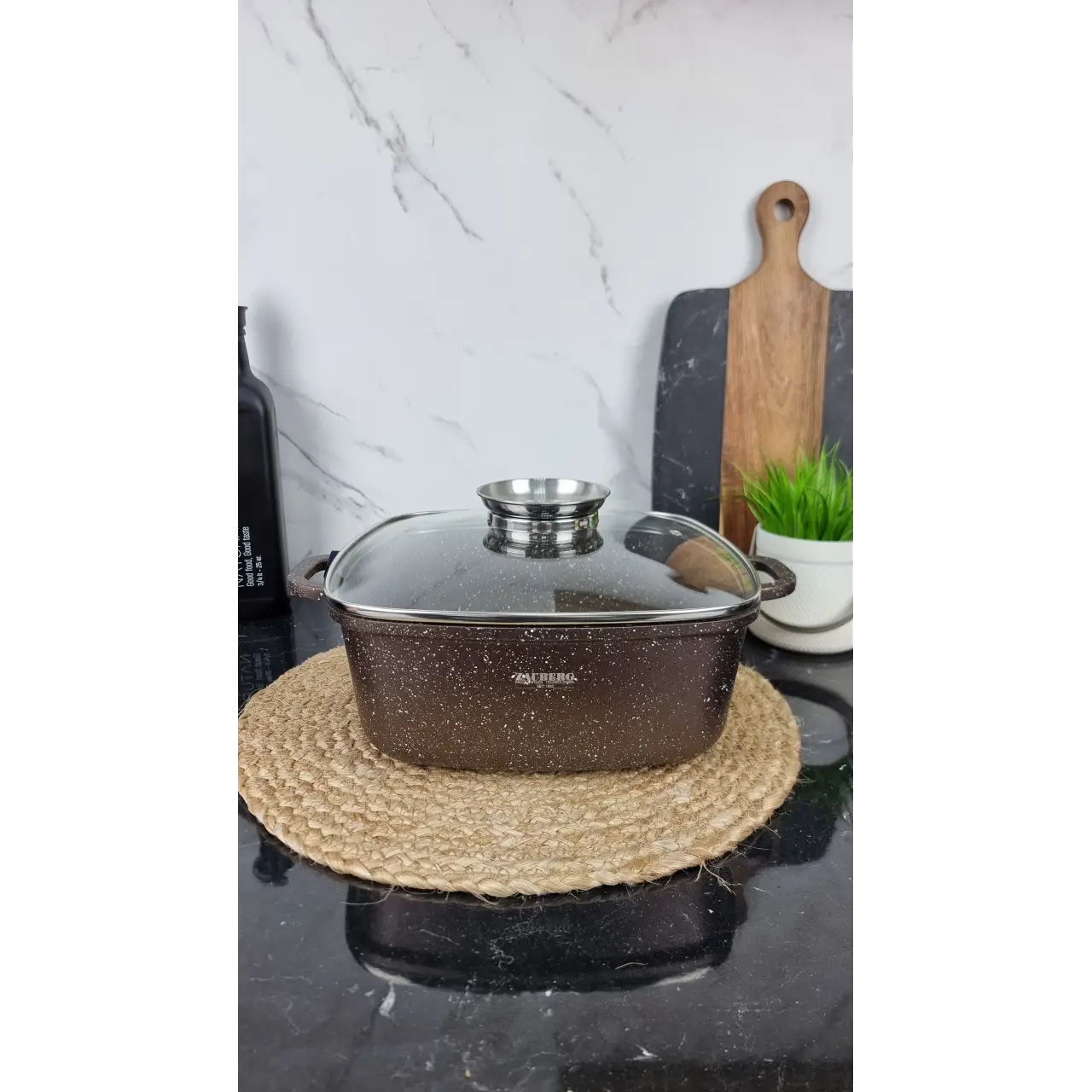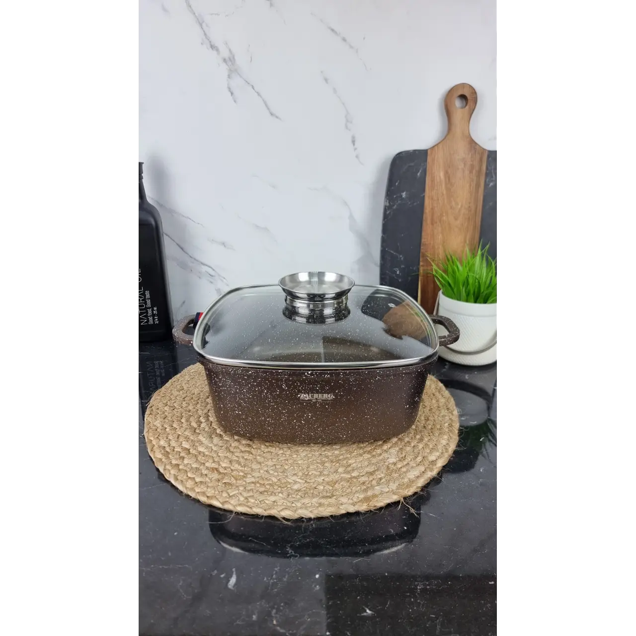 1226-CH Кастрюля квадратная 5,4л антипр.покрытие стек.крышка индукция Мрамор