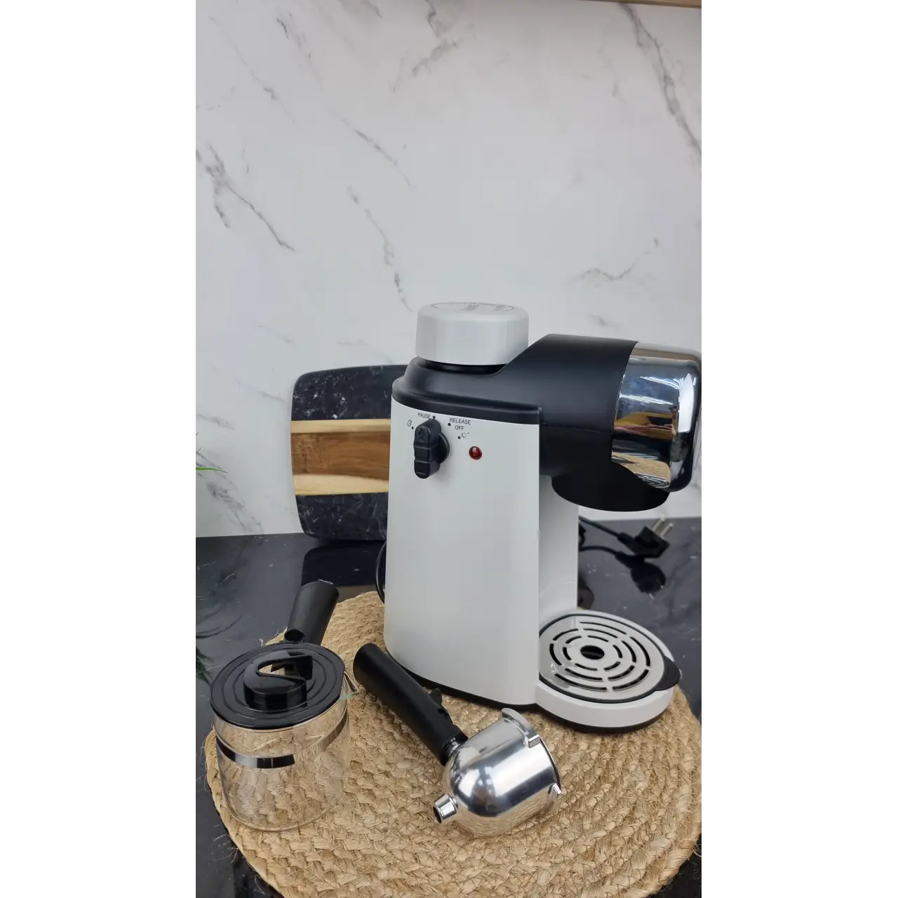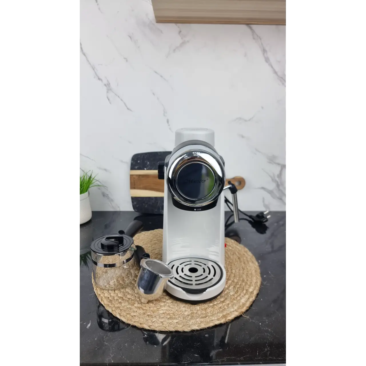 Кофеварка эспрессо Maestro MR‑410 — компактная и функциональная рожковая кофеварка для приготовления эспрессо, капучино и латте прямо у вас дома. Прибор мощностью 800 Вт быстро нагревается и работает под давлением 3,5 Бар, что позволяет раскрыть насыщенный аромат и крепкий вкус молотой кофе. Функция вспенивания молока помогает создать воздушную молочную пенку для капучино, а съемный поддон для сбора капель упрощает уход за устройством. Надёжная система защиты от перегрева и перепадов давления обеспечивает безопасность эксплуатации, а интуитивный переключатель с индикатором делает управление максимально простым. Это отличное решение для ежедневного кофе дома или в офисе, когда хочется свежий напиток за считанные минуты.