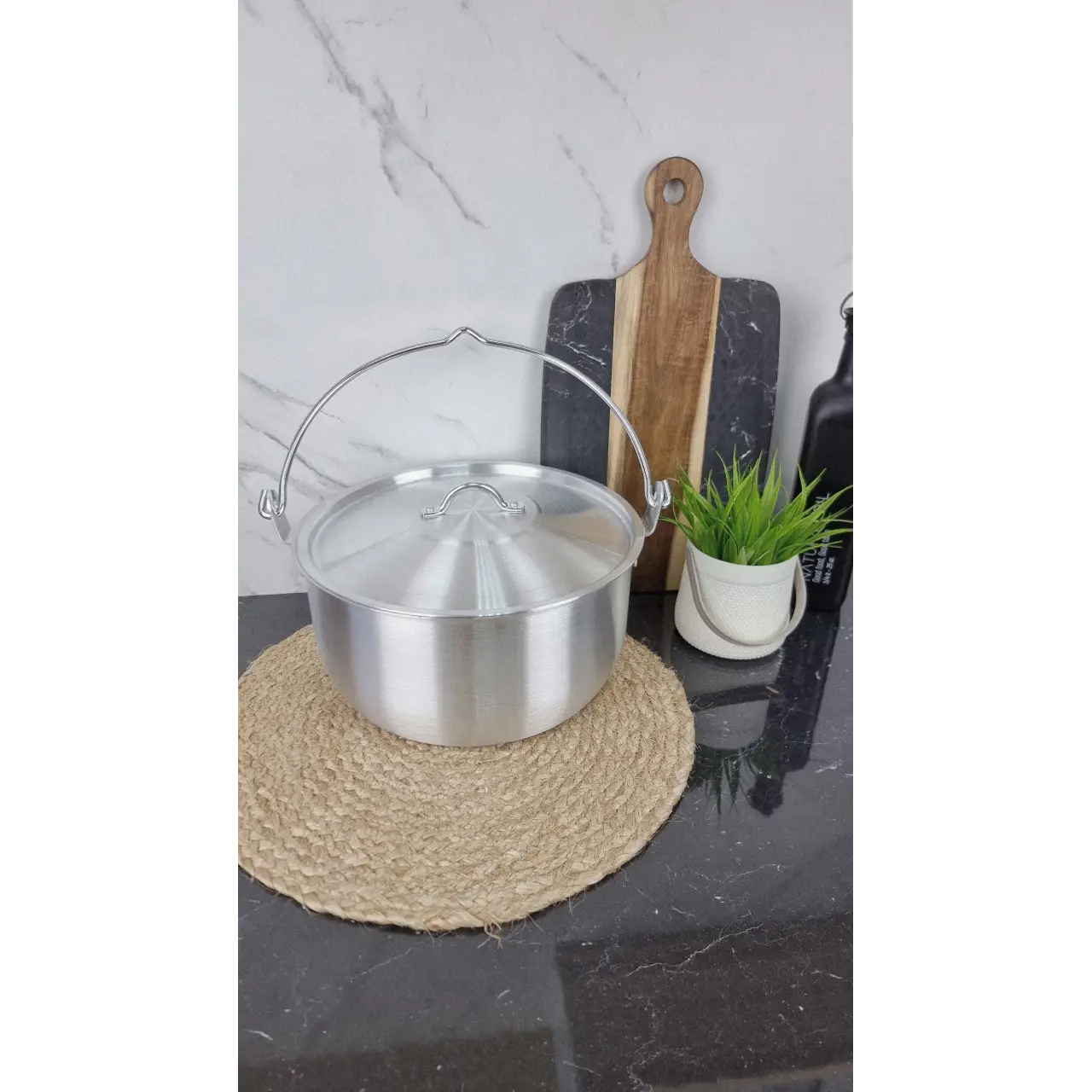 Изготовлен из качественного алюминия, который обеспечивает быстрый и равномерный нагрев. Благодаря прочной дужке казан легко подвешивается над костром или удобно переносится.