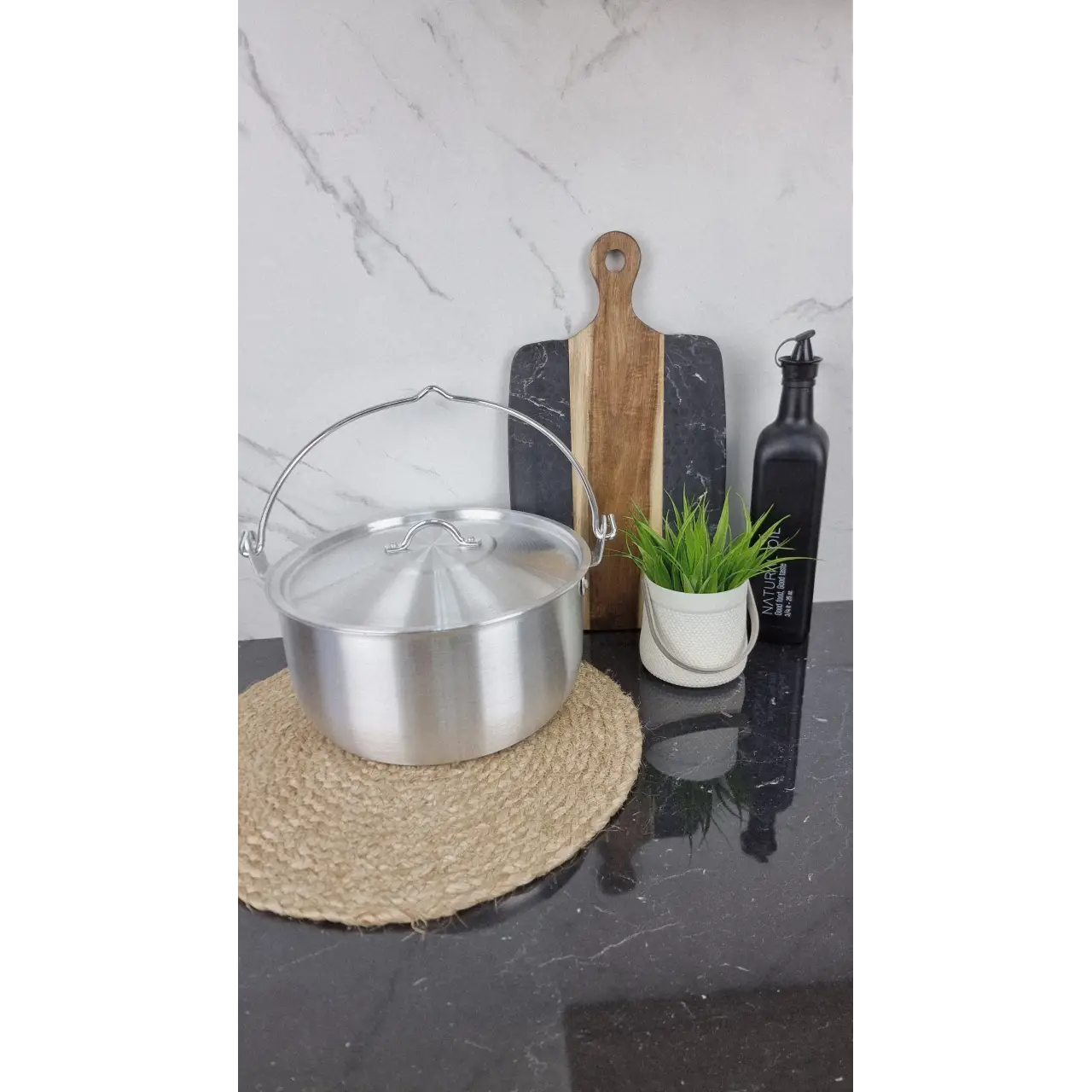 Изготовлен из прочного алюминия, который обеспечивает быстрый и равномерный нагрев. Оснащён надёжной дужкой для подвешивания над костром или удобной транспортировки.