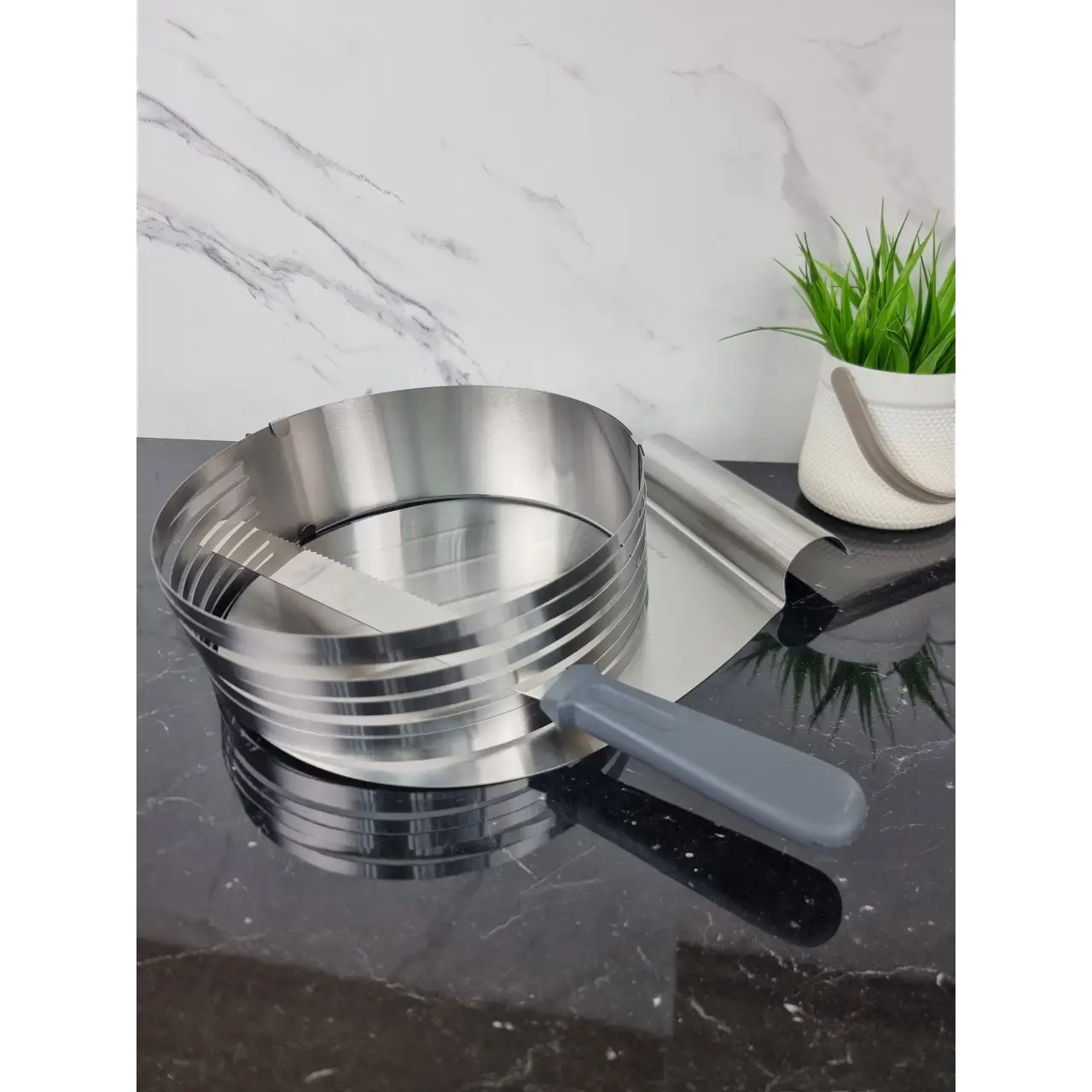 Форма для бисквита Kamille — удобное и практичное решение для приготовления идеальных бисквитов и ровной нарезки коржей. Регулируемая конструкция позволяет изменять диаметр формы в зависимости от размера выпечки, делая её универсальной для домашнего и профессионального использования.