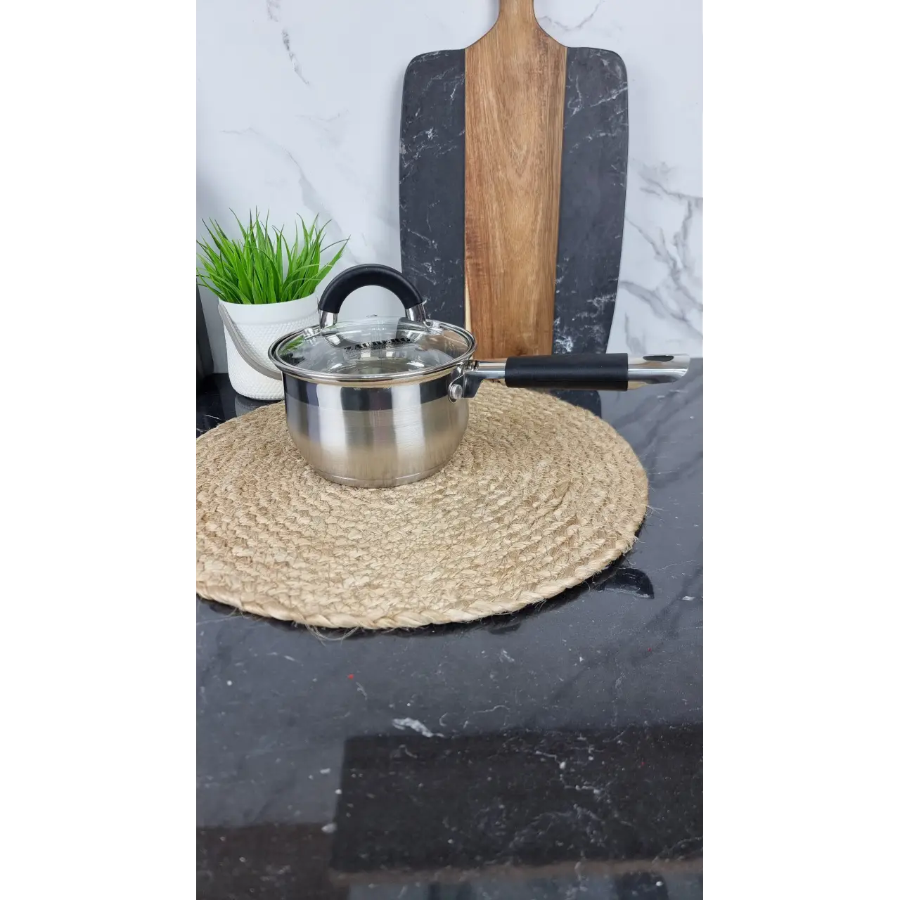Изделие выполнено из качественной нержавеющей стали, что обеспечивает долговечность, устойчивость к коррозии и механическим повреждениям. Нейтральный дизайн гармонично впишется в любой интерьер кухни, а ручка с чёрными декоративными вставками придаёт современный внешний вид. В комплект входит прозрачная крышка из жаропрочного стекла с пароотводом, позволяющая контролировать процесс приготовления без открывания.