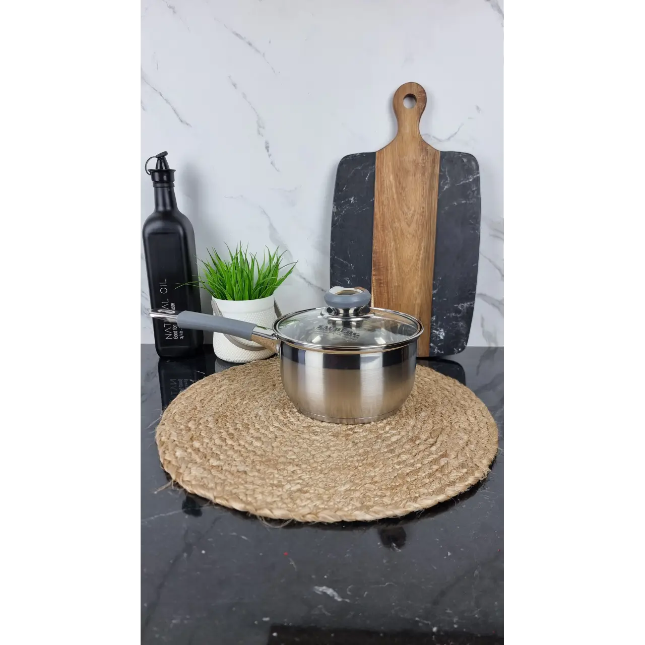 Ковш из нержавеющей стали объёмом 1,9 л — удобная и практичная кухонная посуда для ежедневного использования. Компактные размеры и небольшой вес делают его комфортным в работе, а прочное дно обеспечивает равномерный нагрев. Длинная ручка позволяет безопасно удерживать ковш во время приготовления и практически не нагревается.