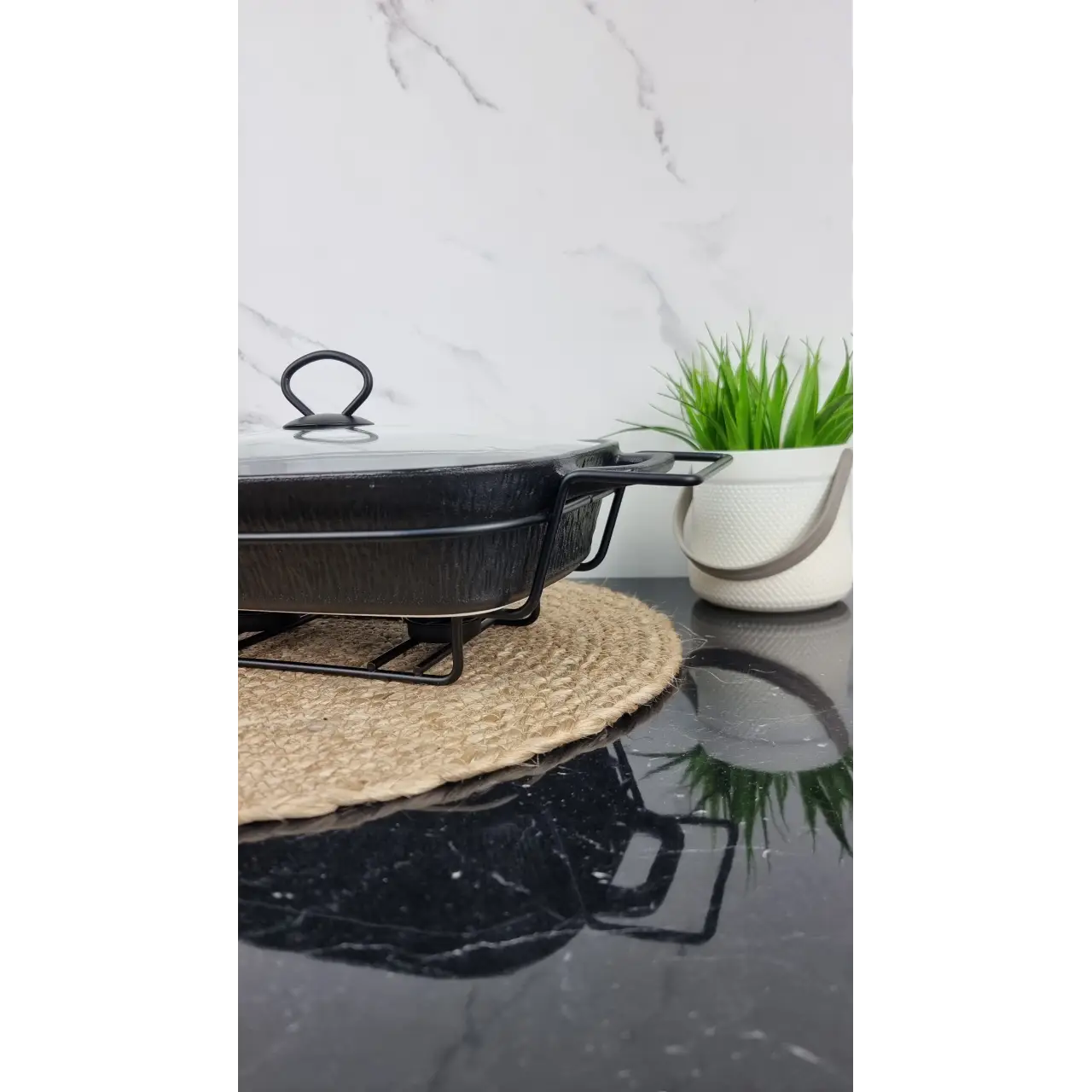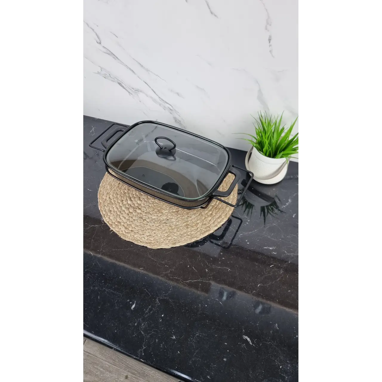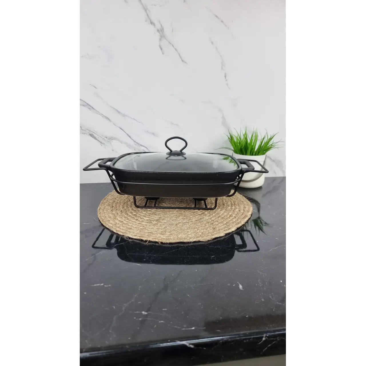 Мармит 2,5л 43см прямоугольный керамический стекл.крышка черный 6428