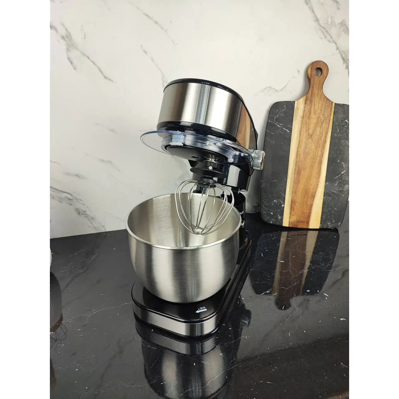 Миксер оснащен подъемной частью, что позволяет легко снимать чашу и менять насадки. В комплекте идут три насадки для разных видов теста и взбивания. Для удобства работы предусмотрено 6 скоростей и импульсный режим. Противоскользящие ножки гарантируют стабильность и безопасность во время работы.