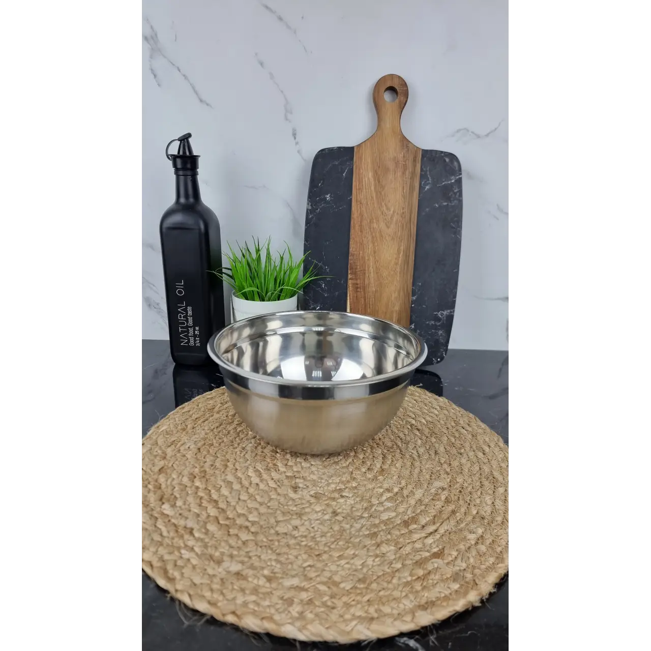 Глубокая миска BN-675 диаметром 22 см изготовлена из легкой нержавеющей стали. Идеально подходит для смешивания ингредиентов, приготовления салатов, теста или соусов.