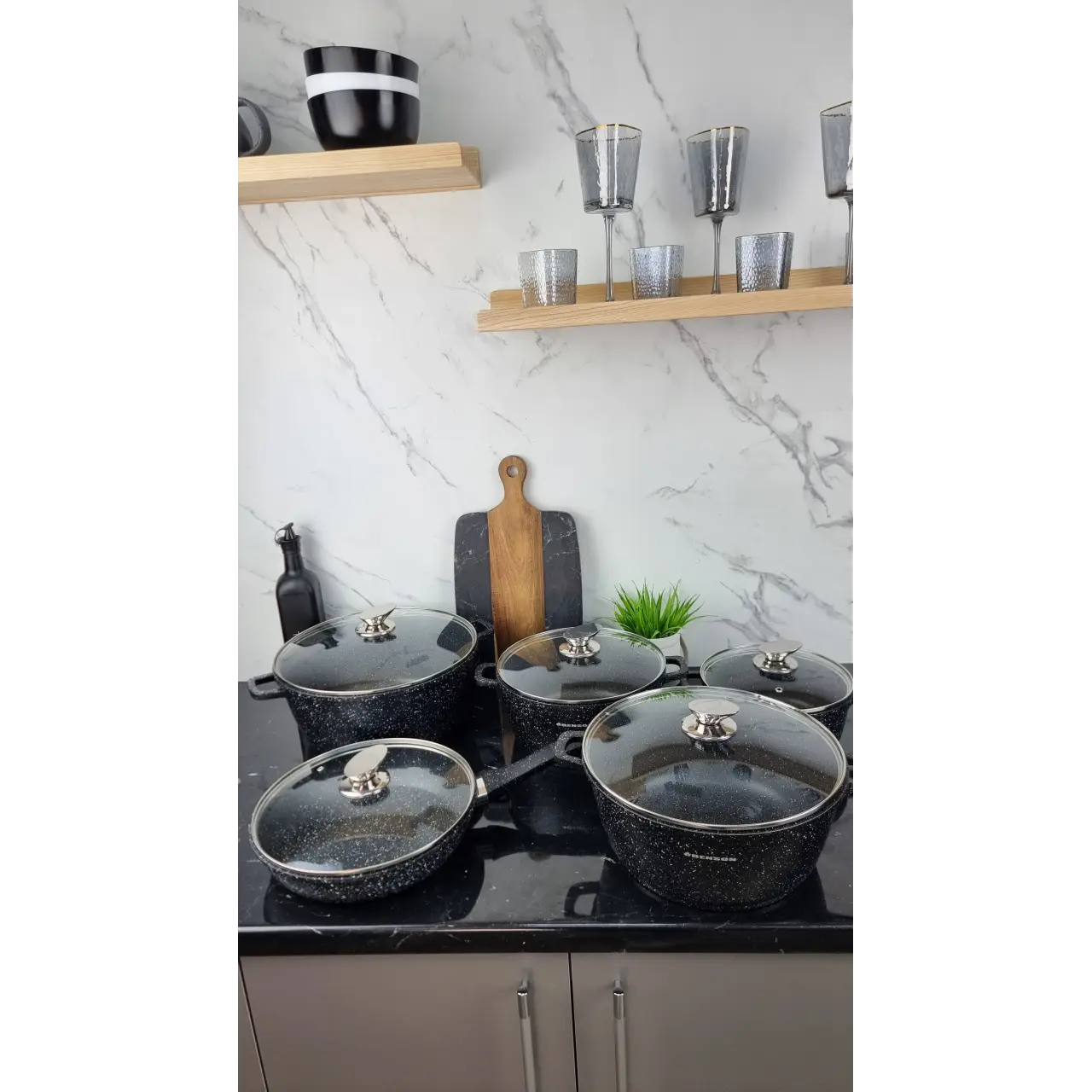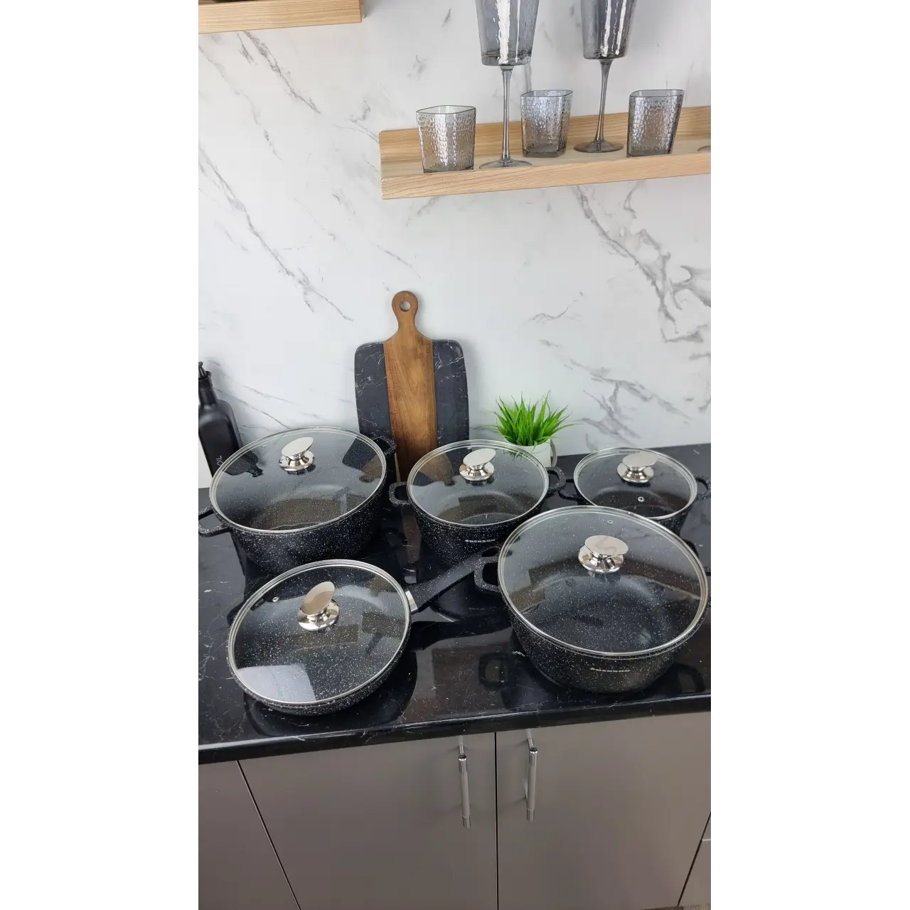 Набор посуды 10-пр. (2,2л, 4,2л 6,3л 7,8л) сковорода 26см мрамор BN-328