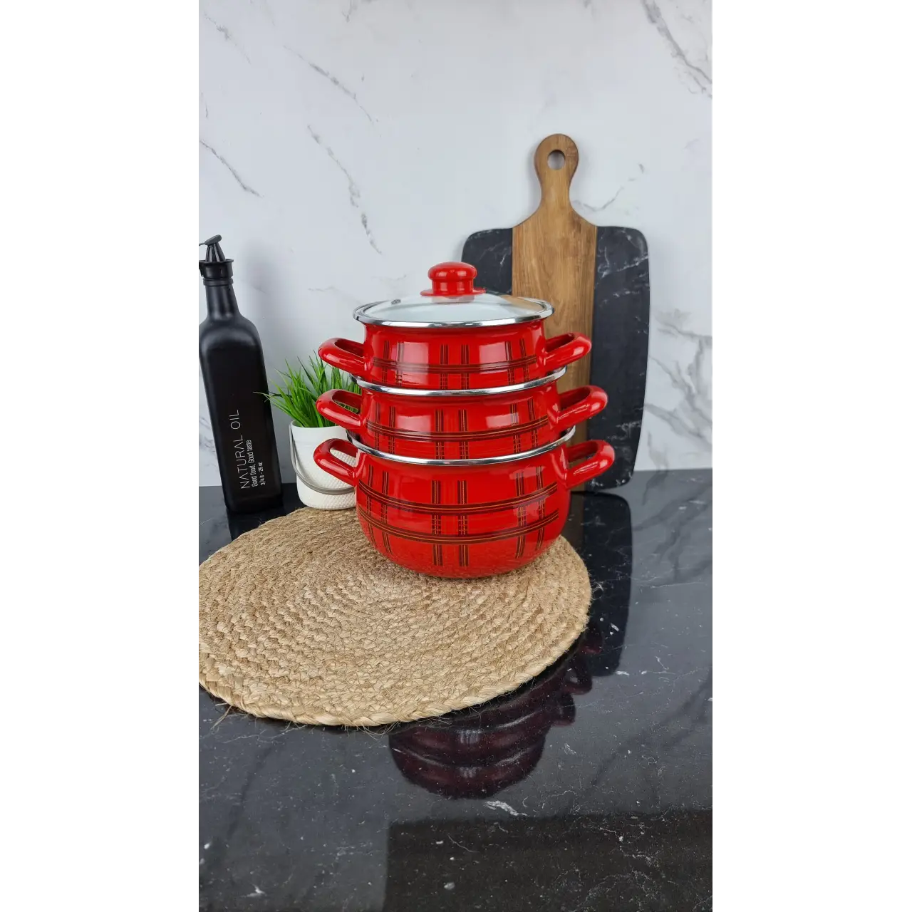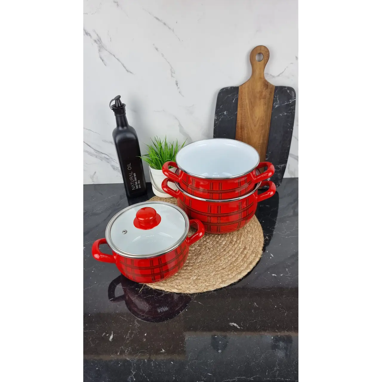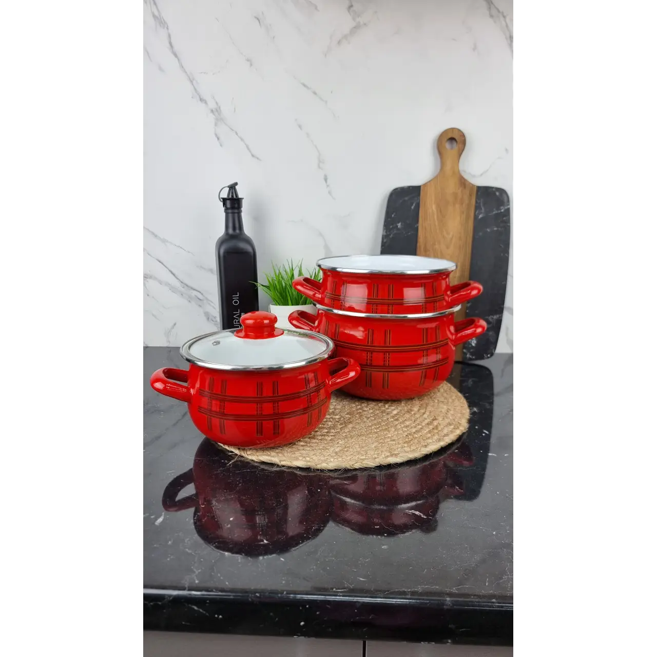 Стеклянные крышки позволяют контролировать процесс приготовления без открытия, сохраняя тепло и аромат блюд. Дизайн «Шотландка» в классическом клетчатом стиле добавляет оригинальности и уюта кухонному интерьеру.