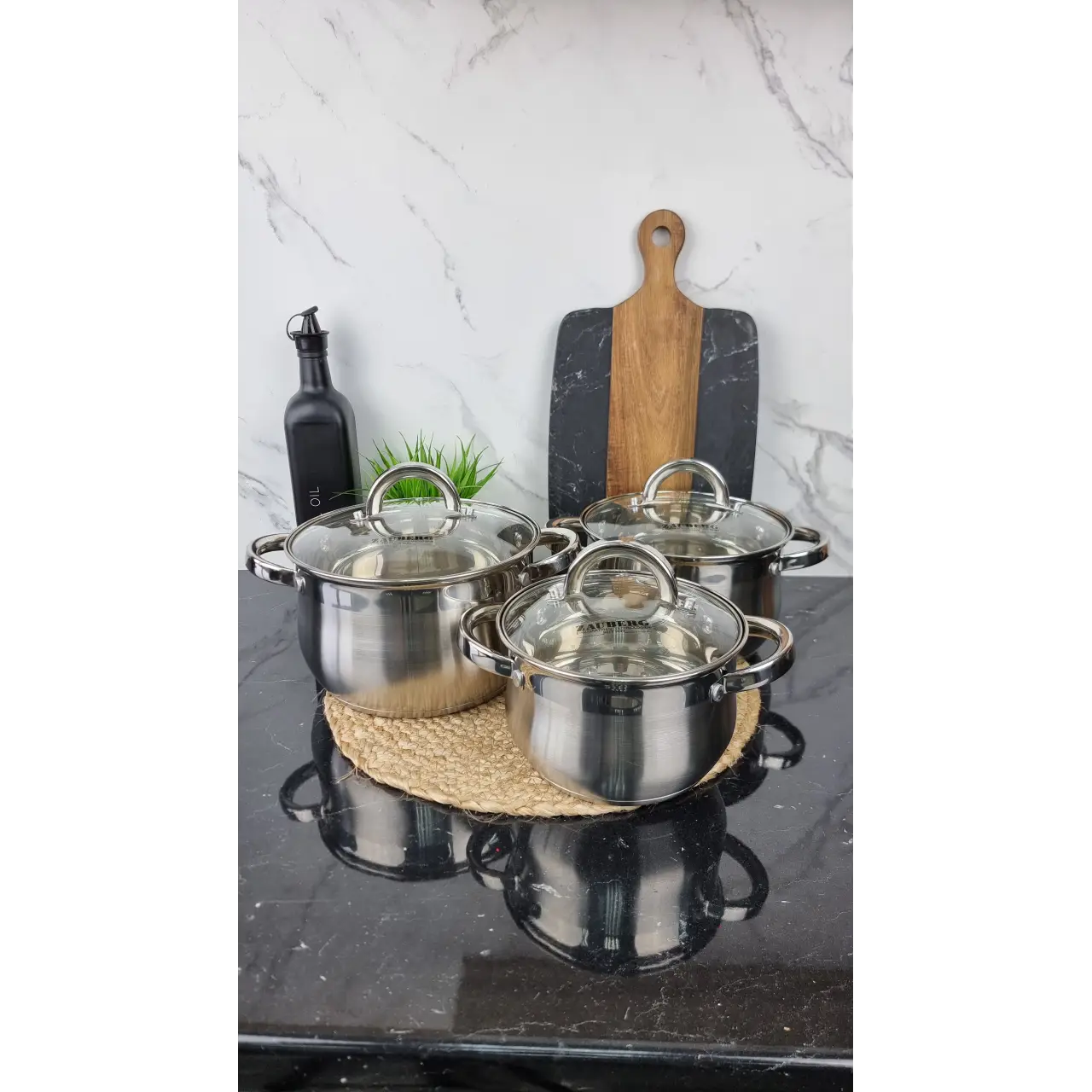 Набор кастрюль из нержавеющей стали от Zauberg подходит для всех типов современных плит, включая индукционные. Кастрюли удобны в использовании и легко моются, в том числе в посудомоечной машине.
