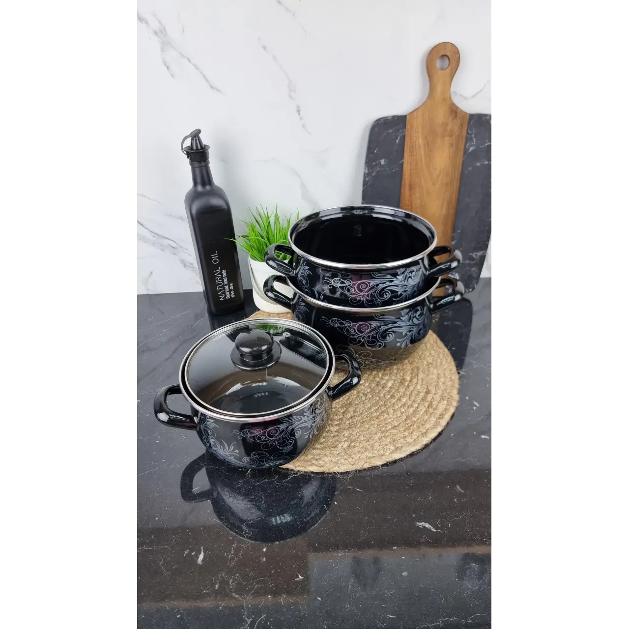 Набор эмалированных кастрюль от ТМ Interos (Турция) — это идеальный выбор для вашей кухни. В комплект входят три кастрюли разных объемов: