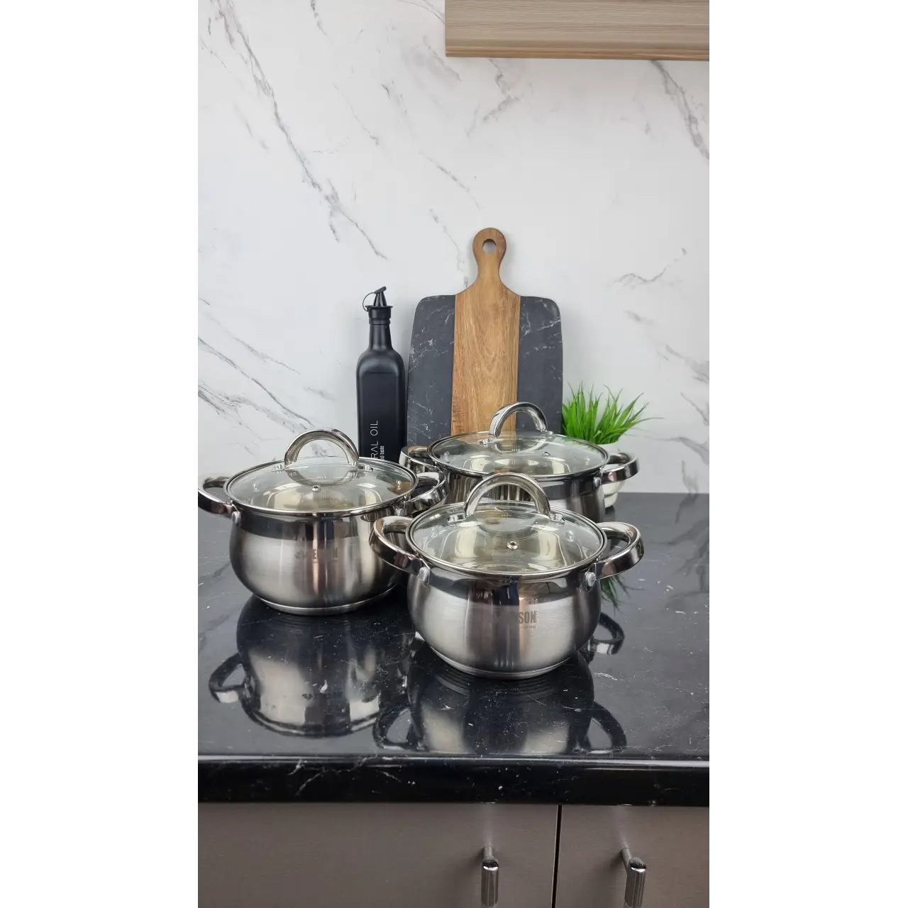 Набор кастрюль BN-209 включает 6 предметов: кастрюли объёмом 2,1 л, 2,9 л, 3,9 л из нержавеющей стали. Набор подходит для жарки, тушения, приготовления супов и соусов, а также для ежедневного использования на домашней или профессиональной кухне.