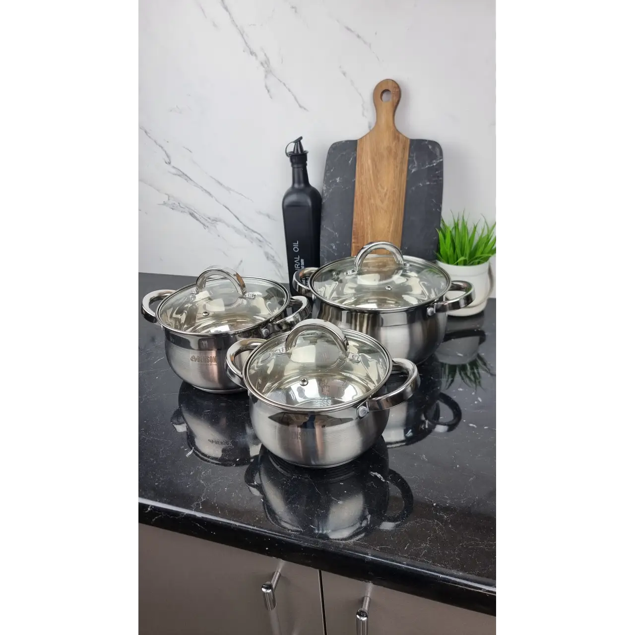Набор кастрюль 6-пр. (2,1л 2,9л 3,9л) нерж.сталь BN-209