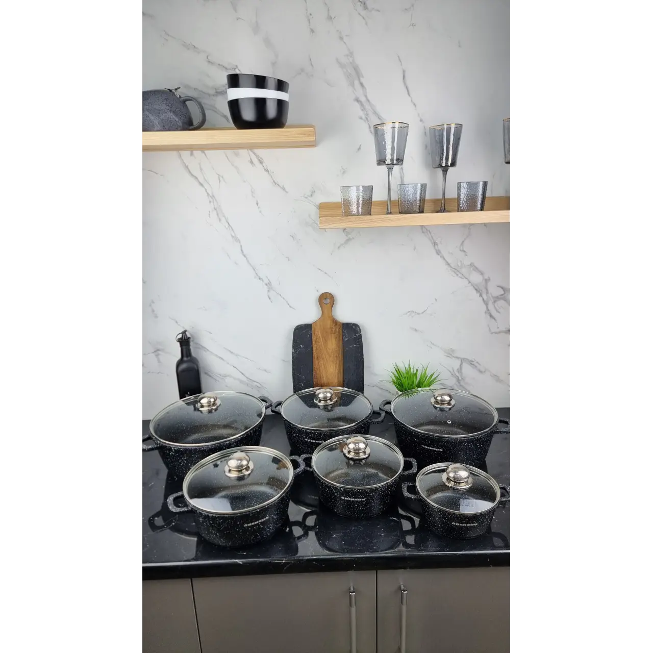 Набор кастрюль 12-пр. (1,2л 2,4л 3,2л 4,5л 5,3л 6,3л) мрамор BN-356