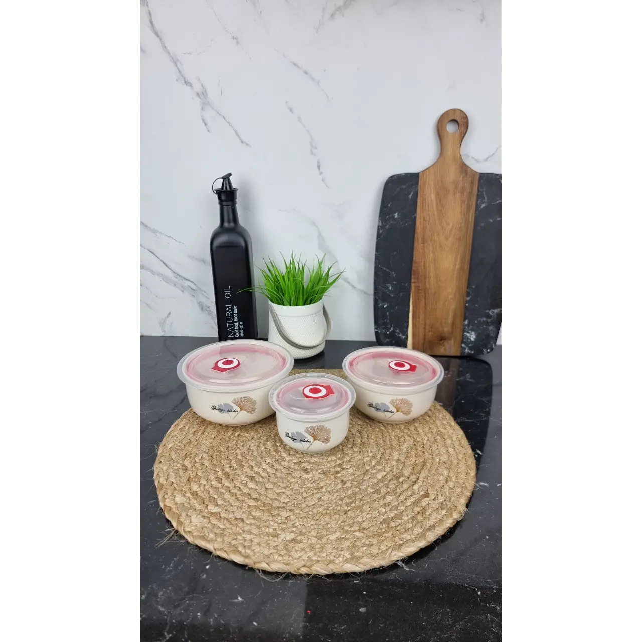 Набор салатников 3-пр. с крышкой «Листок» 5403 от Interos — практичный и стильный комплект для вашей кухни. В набор входят три салатника разного объёма: 300 мл, 450 мл и 1000 мл, каждый с плотно прилегающей крышкой. Это позволяет удобно подавать блюда и хранить салаты и закуски, защищая их от посторонних запахов и пыли.