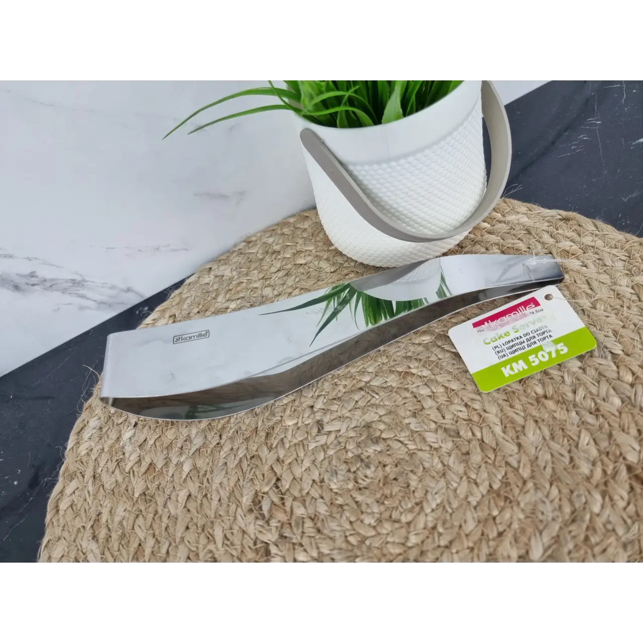 Нож-разделитель для торта — удобный и практичный кондитерский инструмент, с помощью которого можно не только аккуратно нарезать торт, но и легко переложить кусочки на блюдца или тарелки. Отлично подходит для подачи тортов, пирожных, бисквитов и других кондитерских изделий.