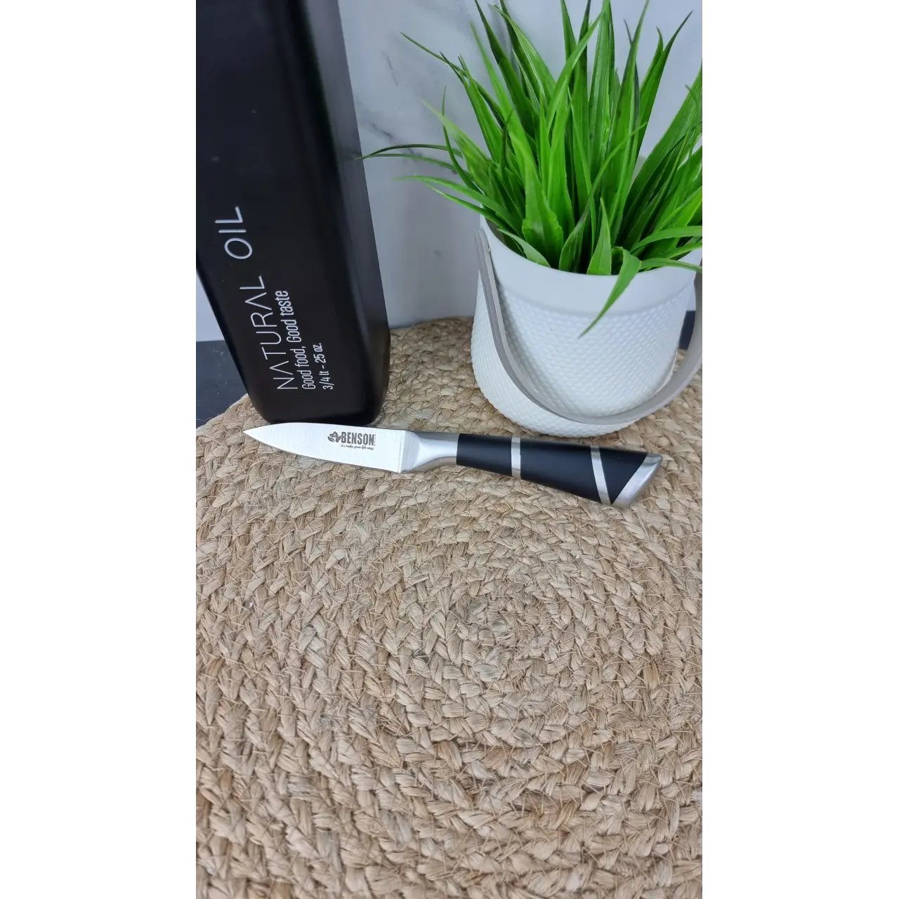 Нож BN-1077 длиной 3,5" (≈8,9 см) изготовлен из нержавеющей стали и предназначен для резки, нарезки и обработки небольших продуктов на кухне.
