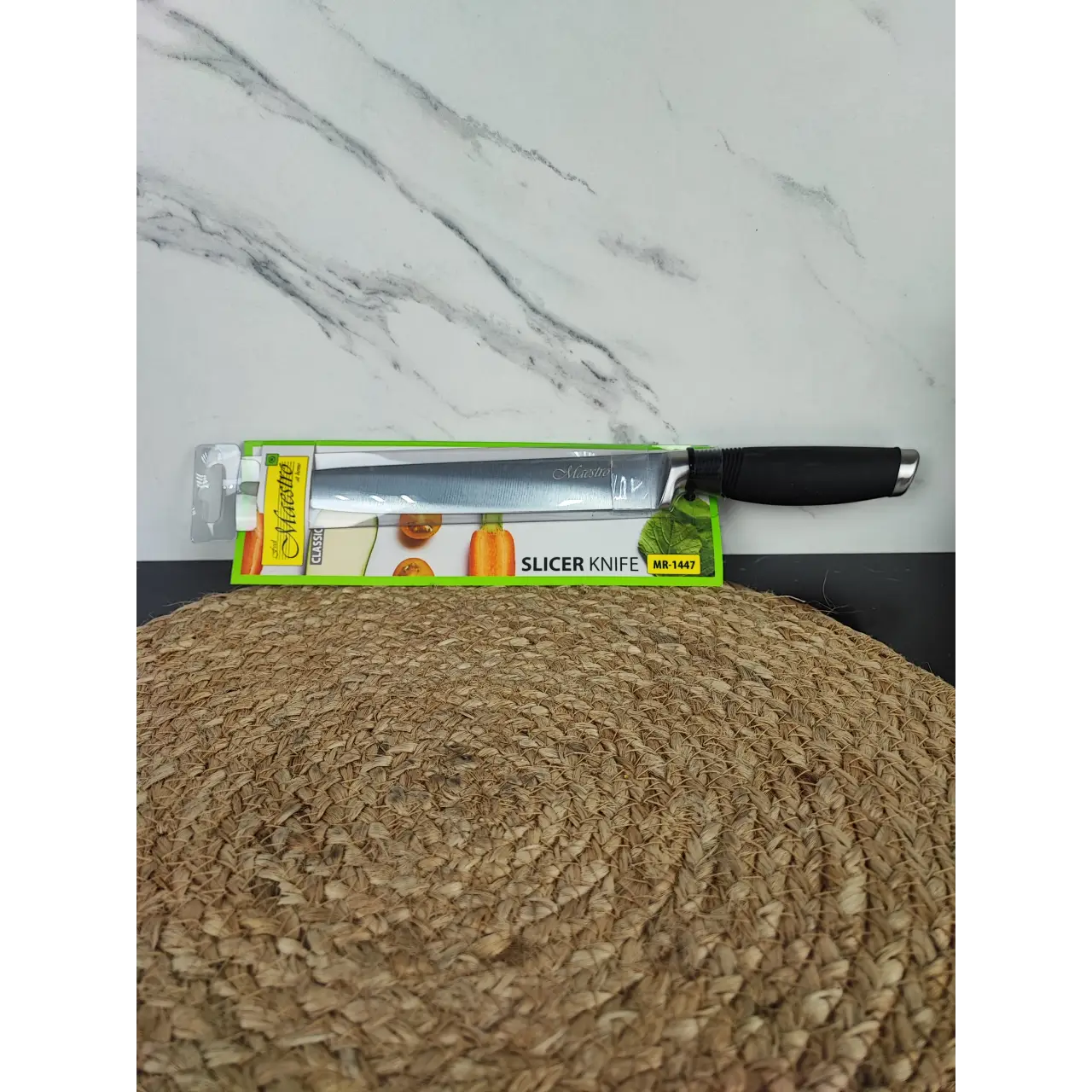 Универсальный нож MR-1447 — надёжный и удобный инструмент для вашей кухни. Благодаря стальному лезвию длиной 20 см и толщиной 1,8 мм он отлично подходит для нарезки мяса, овощей, фруктов и других продуктов. Эргономичная пластиковая ручка обеспечивает комфортный и безопасный хват.