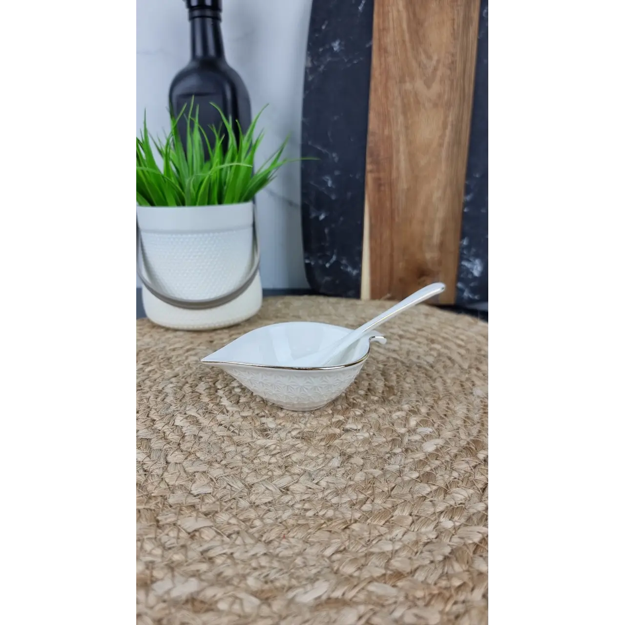 MB0182-A Икорница 4,5" с ложкою фарфор. белая