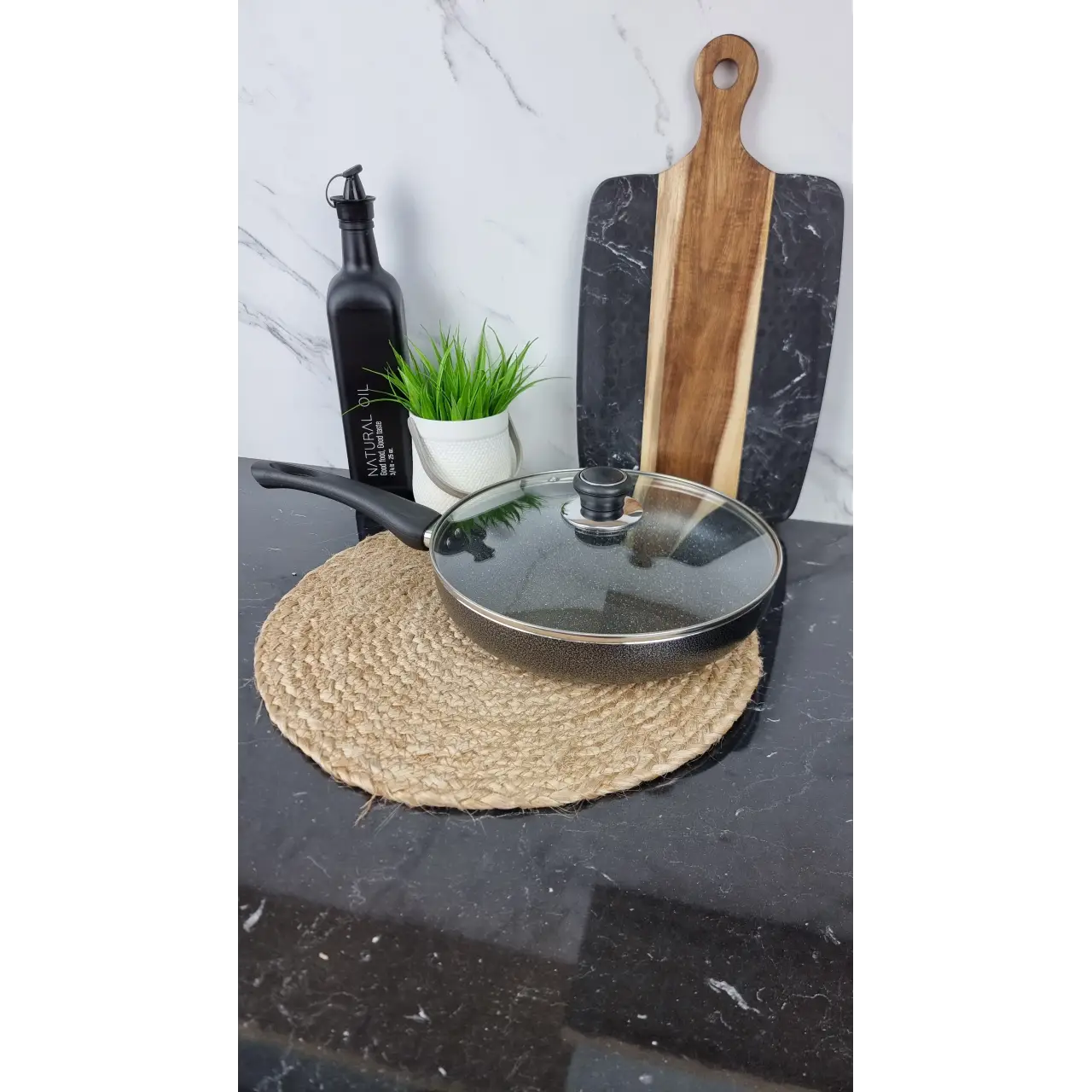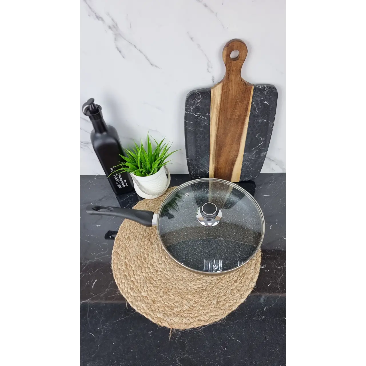 Стеклянная крышка с отверстием для выхода пара позволяет контролировать процесс приготовления, сохраняя тепло и аромат блюда. Эргономичная ручка обеспечивает удобство и безопасность использования.