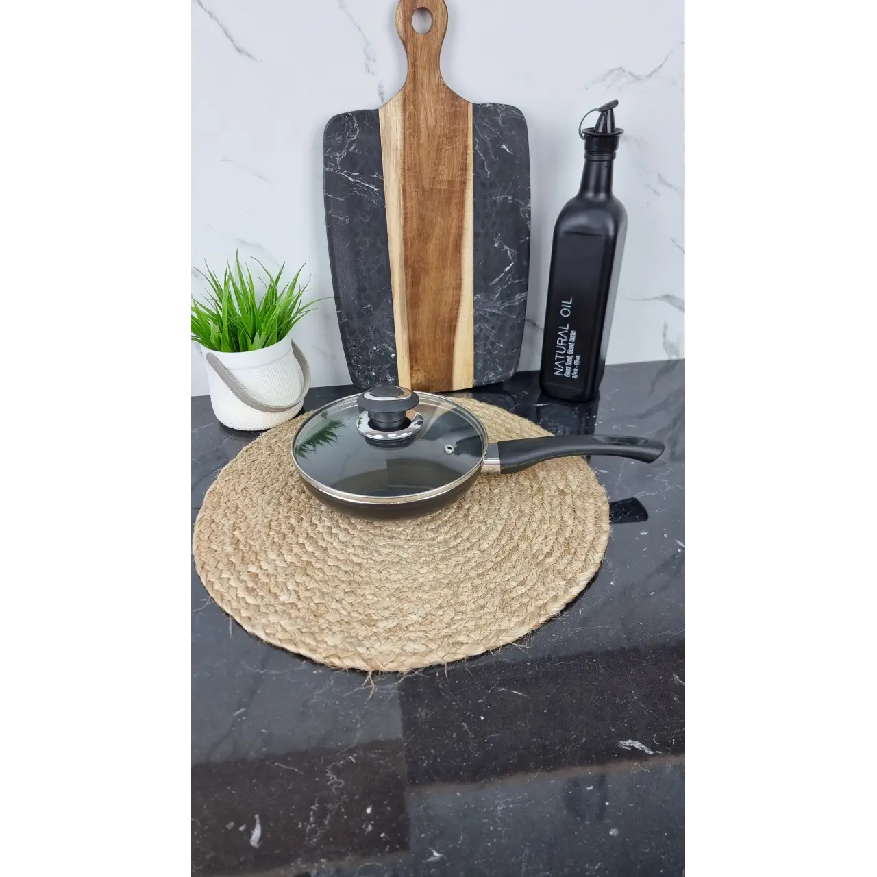 Прочный корпус обеспечивает равномерное распределение тепла для качественного приготовления. В комплект входит стеклянная крышка с отверстием для выхода пара для удобного контроля процесса.