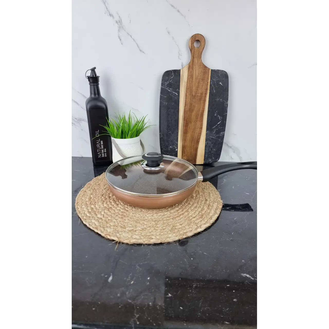 FPM-242 Сковорода 24см антипр.покрытие стек.крышка Мрамор Бронза