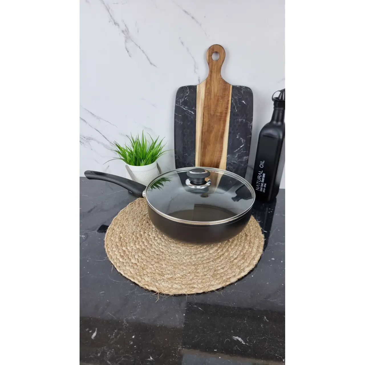 FPN-261 D Сковорода глубокая 26см антипр.покрытие стек.крышка NON STICK Чорний