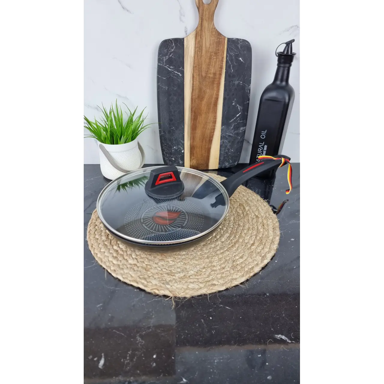 QD-F-T-0328 L Сковорода 28см антипр.покрытие стек.крышка термоиндикатор Мрамор