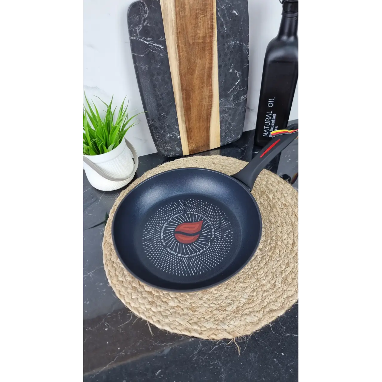 Особенность модели — встроенный термоиндикатор, который показывает достижение оптимальной температуры нагрева, помогая начать приготовление в нужный момент. В комплект входит стеклянная крышка с отверстием для выхода пара для удобного контроля процесса.